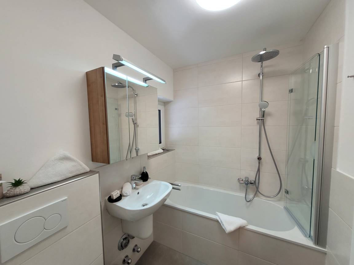 Die Ferienwohnung überzeugt durch eine komplett ausgestattete Küche inklusive Spülmaschine und einem neuen Bad mit Badewanne. Außerdem wird ein Satz Handtücher und Bettwäsche zur Verfügung gestellt.