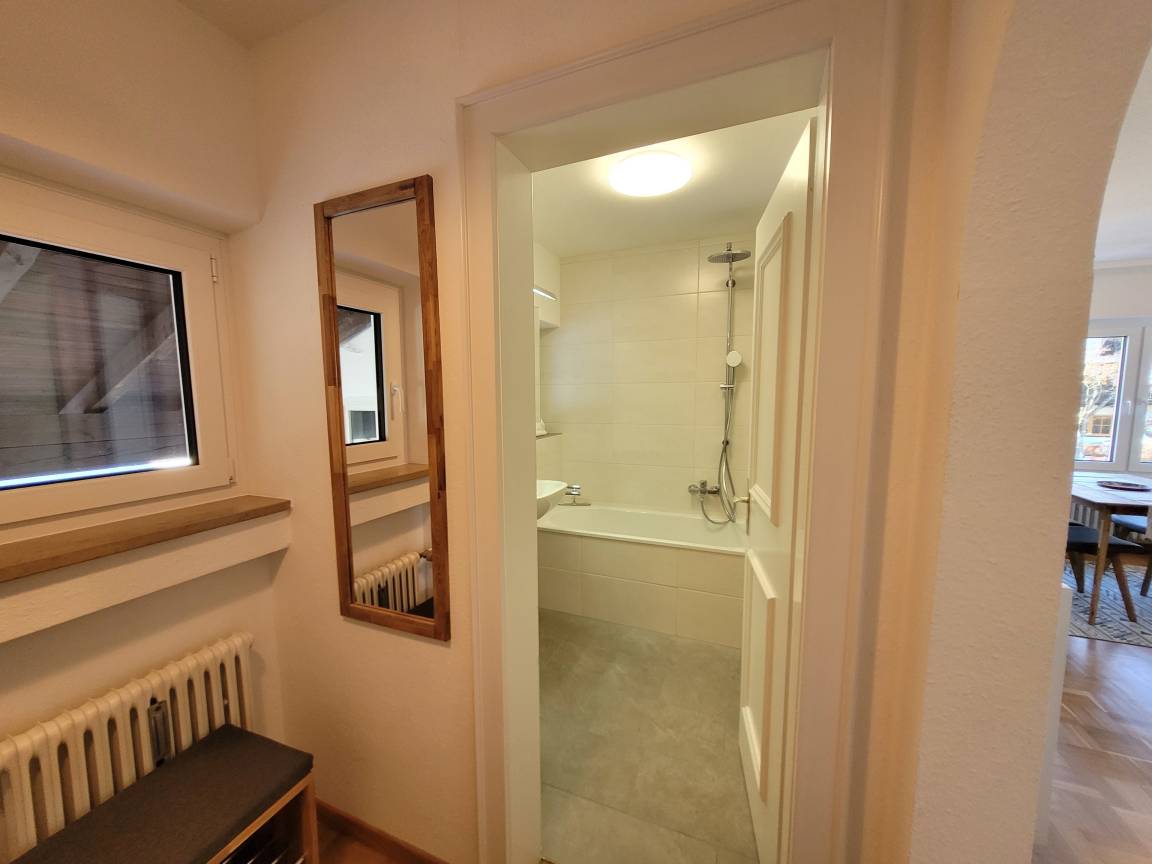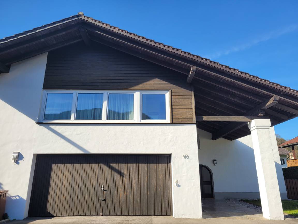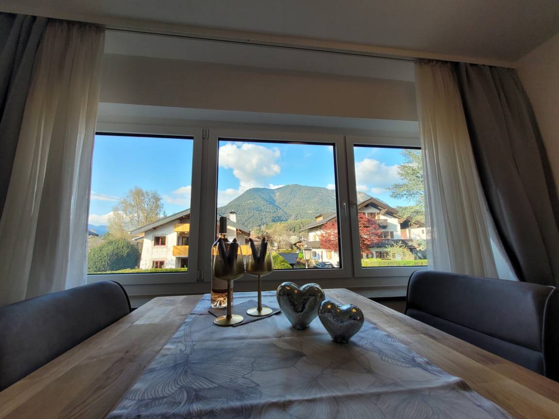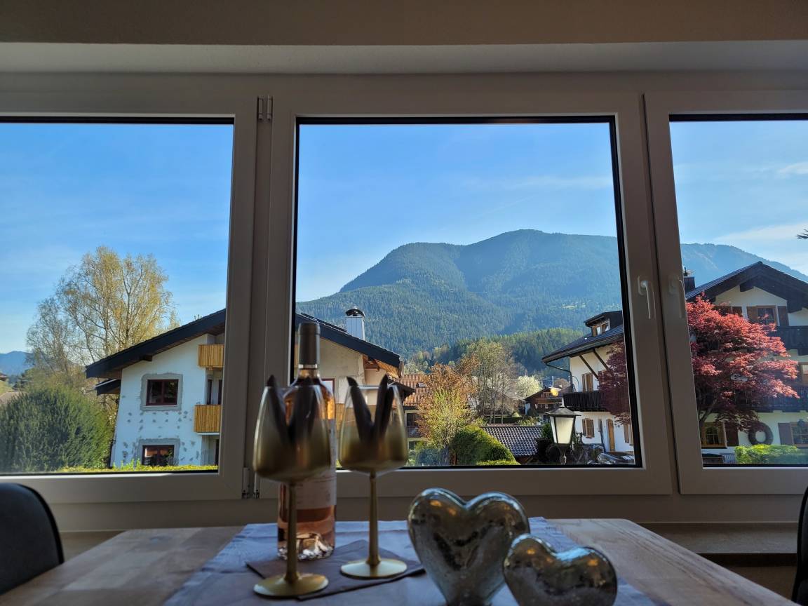Die gemütliche und moderne Ferienwohnung befindet sich im 1. Obergeschoss. Von dort genießen Sie einen wunderschönen Blick auf den Wank.