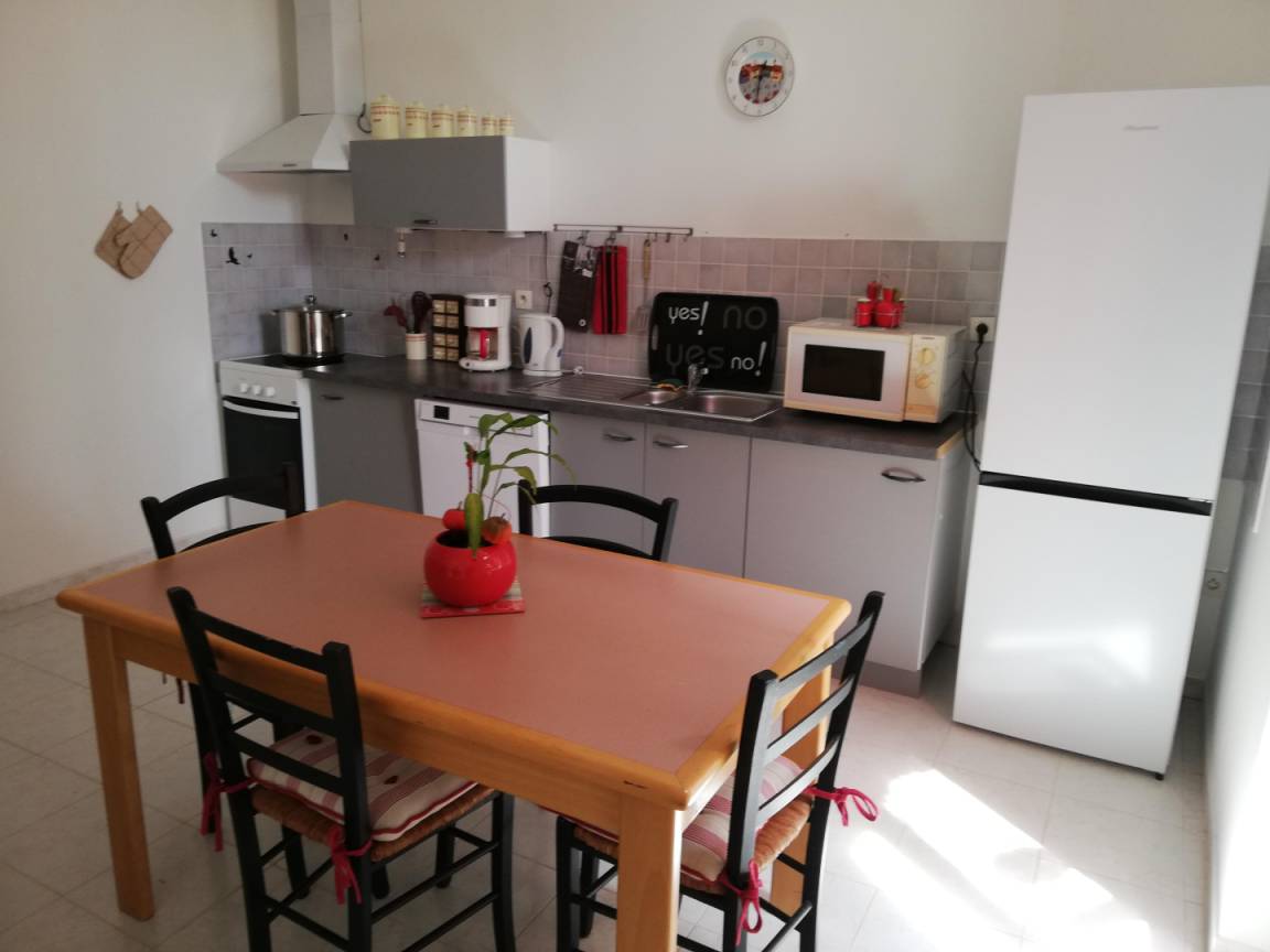 „Comme une maison de famille ! Chambres spacieuses, confortables. Grande salle à manger et salon, très bien pour les après midi jeux de société. Suffisamment de plats, couverts... pour un grand groupe. Très beaux couchers de soleil depuis le salon de jardin“