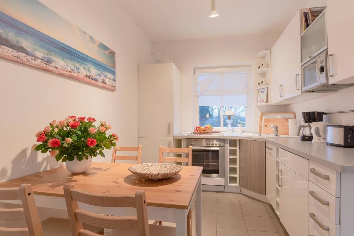 Die Küche hat u.a. eine Spülmaschine, Cerankochfeld, Backofen, Mikrowelle, Kaffeemaschine, Wasserkocher sowie einen Wasch-Trockner. Das Bad ist mit Dusche, WC und einem geräumigen Spiegelschrank ausgestattet. Die Wohnung verfügt über SAT-TV und freies WLAN. Die Räume haben Fußbodenheizung und Fliesen- bzw. Holzfußboden.