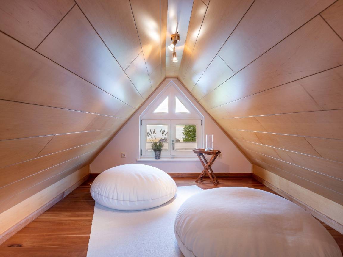 Ein Schlafzimmer mit Ankleide und geräumigem Badezimmer befindet sich auf dieser Ebene. Über eine weitere Treppe erreichen Sie das Dachgeschoss mit zwei zusätzlichen Schlafzimmern und einem großzügigen Bad mit Badewanne.
