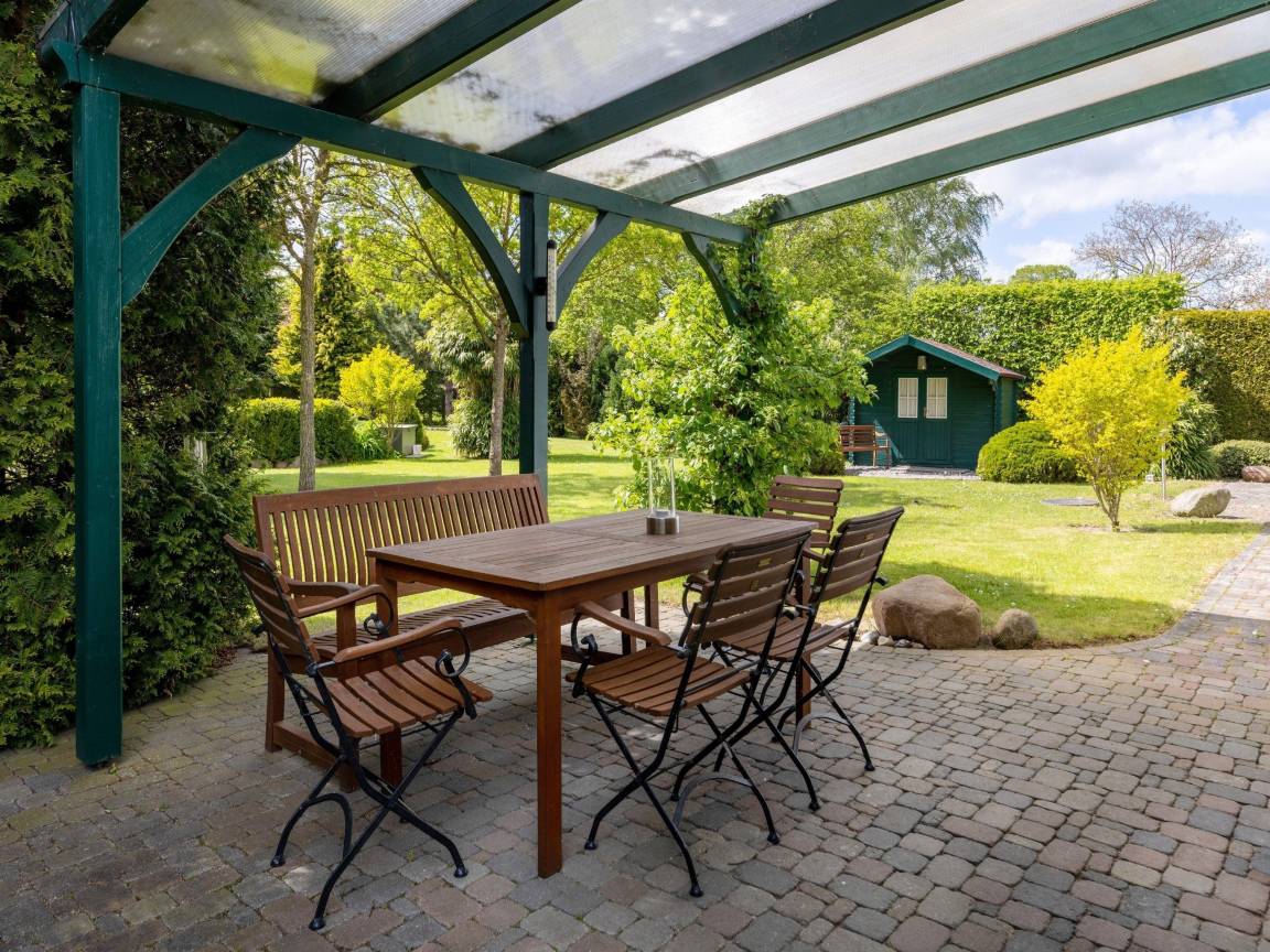 Der gepflegte Garten schafft Raum zum Spielen, Entspannen oder Grillen.