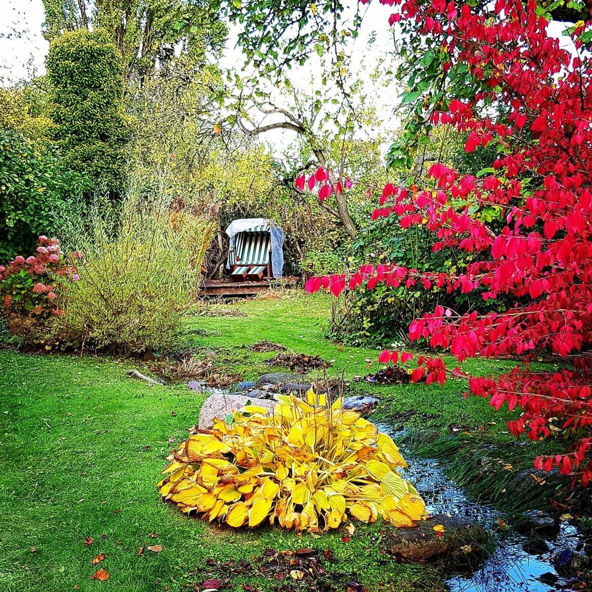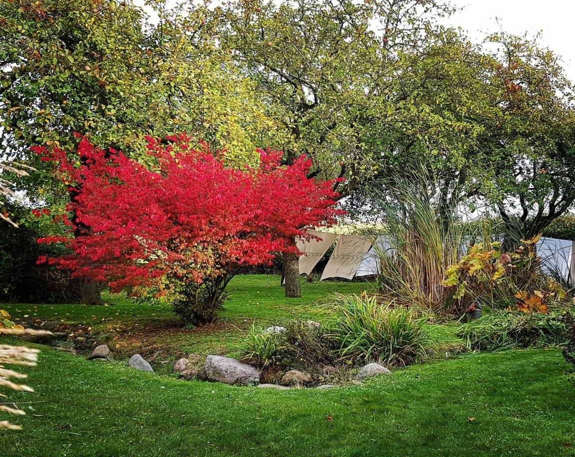 Der gesamte Garten mit seinen hochwertigen Gartenmöbeln steht Ihnen zur freien Verfügung. Auf den jeweiligen Terrassen haben Sie Gartenmöbel und Liegestühle nur für sich. Zusätzlich gibt es in unserem Garten überall die Möglichkeit, es sich in den unterschiedlichen Ruheoasen gemütlich zu machen. Eine Augenweide sind auch unsere drei Teiche, die durch einen Bachlauf verbunden sind.
