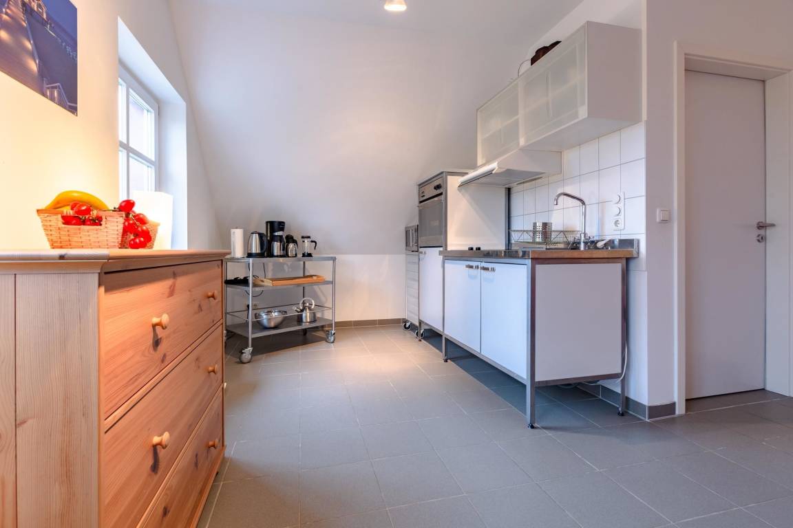 Die Küche verfügt u.a. über eine Spülmaschine, Cerankochfeld, Backofen, Mikrowelle, Kaffeemaschine, Wasserkocher. Sie haben SAT-TV und freies WLAN. Die Räume haben Fußbodenheizung und Fliesenboden. Das Bad ist ausgestattet mit Dusche und WC sowie einer Waschmaschine.