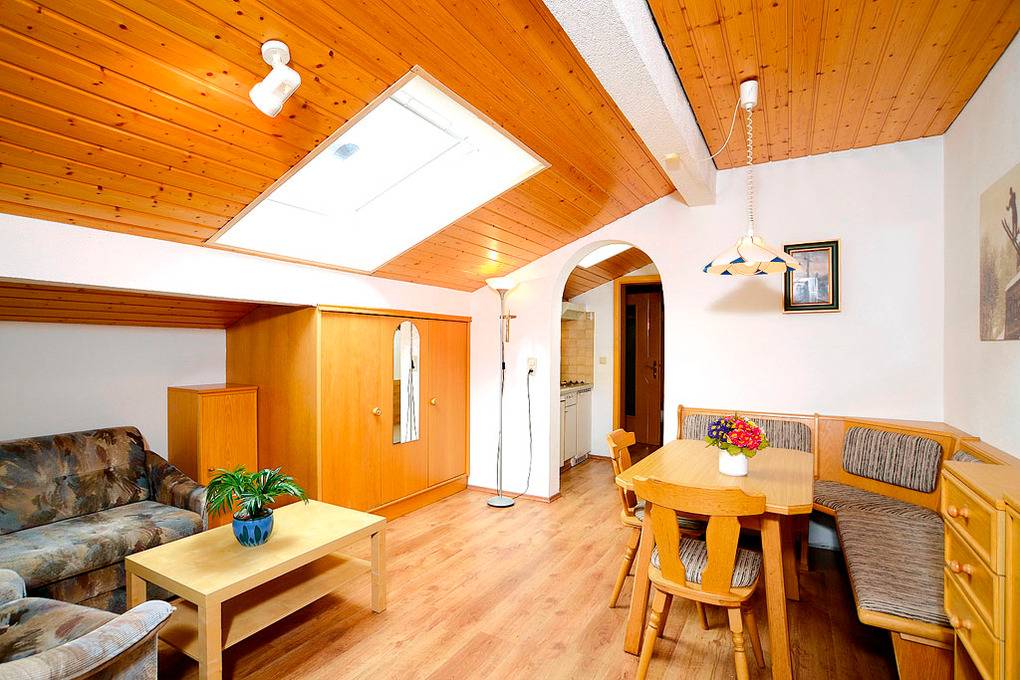 A 60.51 Wohnung 2 Pers.: 2-Zimmerwohnung mit 45 qm Wohnfläche, 1. Etage. Flur. Gemütliche Wohnküche mit Küchenzeile (Backofen), Couch, Esstisch, Eckbank, Sat-TV. Doppelzimmer. Bad: Du, Wb, WC.