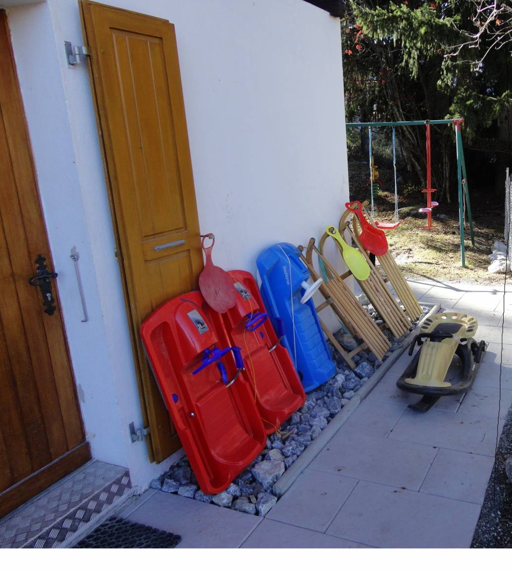 Für Ihre Kinder steht eine Rutschbahn, eine Schaukel, ein Tischtennistisch und im Winter sogar Schlitten bereit. Ihre Kinder können sogar auf dem Grundstück rodeln.
