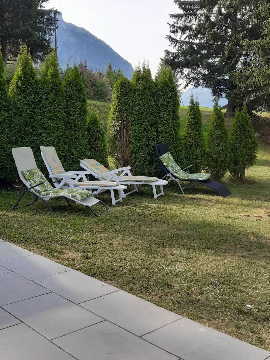 Ein 3000 m² grosses Stück (700m²eigener Wald),Gartencheminée,Feuerstelle,Rutschbahn,Schaukel,Tischtennistisch Naturhäuschen umgeben das Chalet. Terrasse mit Liegestühlen an sonniger Lage