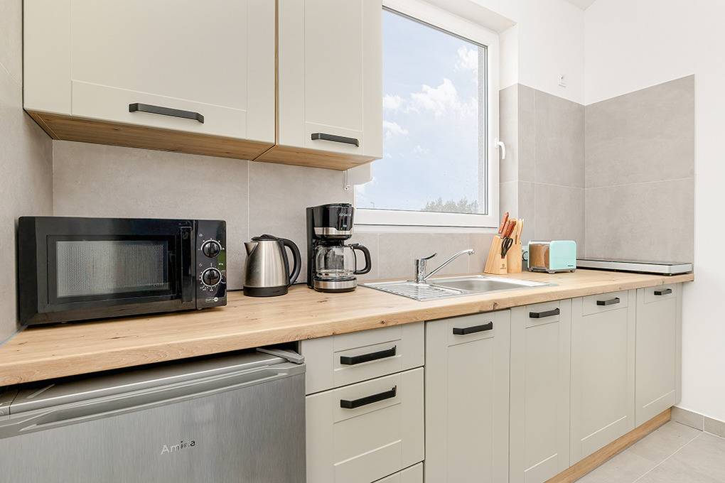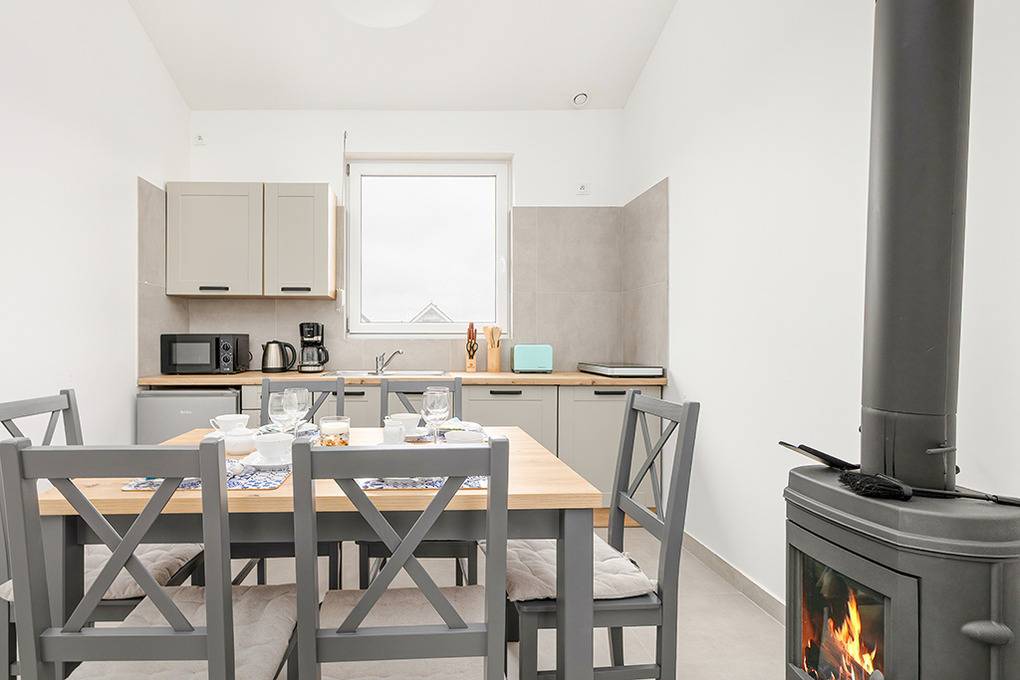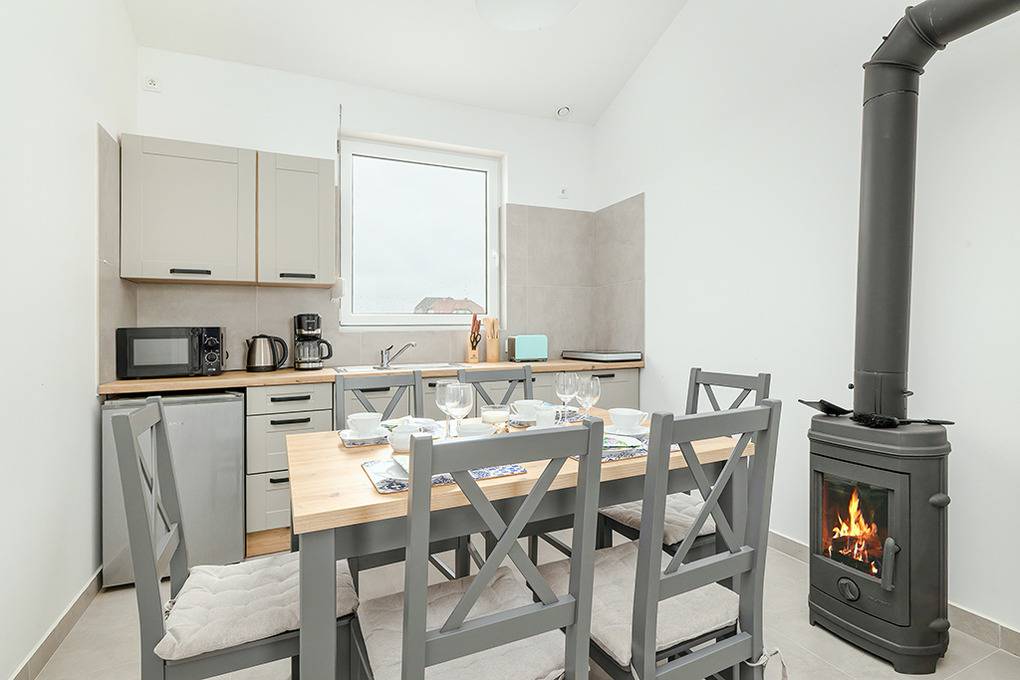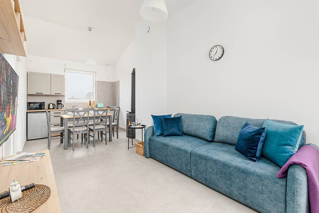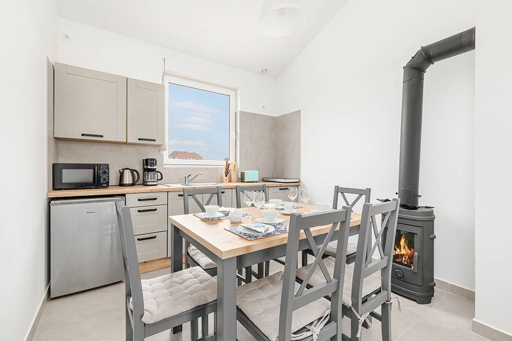 Nebenkosten Strom nach Verbrauch (18.01.-20.06.26 und 05.09.26-23.01.27). Kurtaxe. Bettwäsche vorhanden. Handtücher mitzubringen. Zusätzliche Leistungen 1 Pkw-Stellplatz im Preis inklusive. Kostenloser Internetzugang über W-Lan. Kinder Babybett nur innerhalb der maximalen Personenzahl 10 Zl./Tag (Bestellung). Hochstuhl 10 Zl./Tag (Bestellung). Haustier nicht erlaubt.Räume & Aufteilung