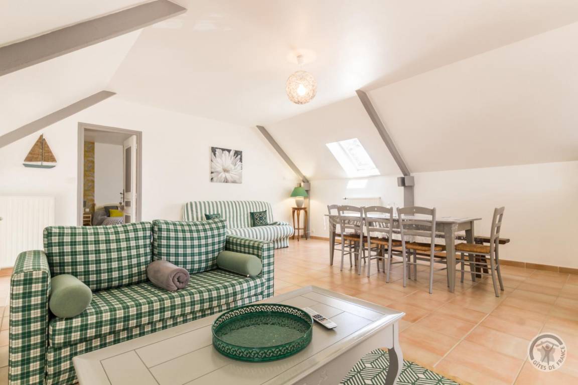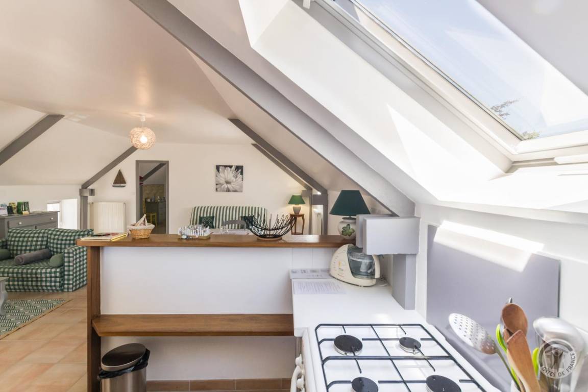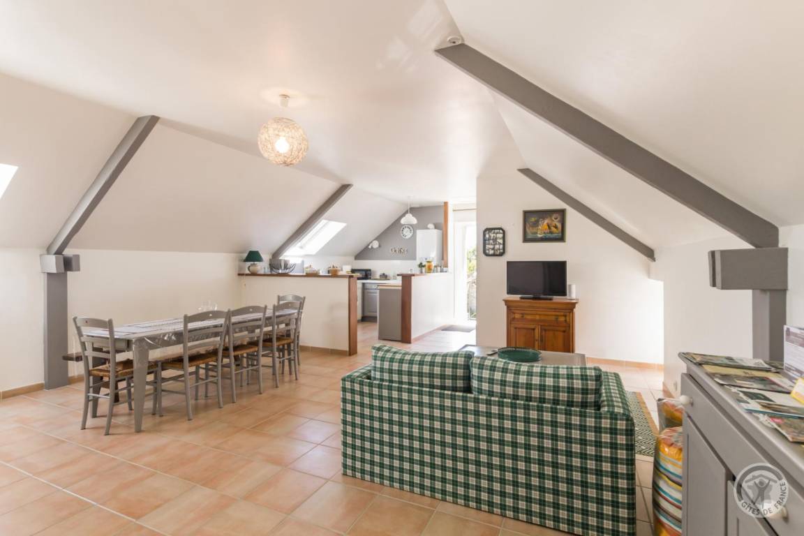 Wohnung im 1. Stock eines Nebengebäudes (Zugang über private Außentreppe). Wohnzimmer (TV, DVD, Internet) mit Küchenzeile (Backofen, Kühlschrank, Mikrowelle, Waschmaschine). Duschraum mit WC. Schlafzimmer (1 Bett 180x200 + Bett 90x190). Schlafsofa im Wohnzimmer. Babyausstattung auf Anfrage. Gaszentralheizung gegen Aufpreis (100 €/Aufenthalt). Bettwäsche und Handtücher werden gestellt, Betten bei Ankunft bezogen. Reinigungsservice gegen Aufpreis. Geschlossener Garten zur gemeinsamen Nutzung mit einer anderen Gîte. Gartenmöbel. Gemeinsamer Grill. Liegestühle. Unterstand. Parkplatz im gemeinsamen Hof. Ladestation für Elektroautos (Festpreis/Tag).
