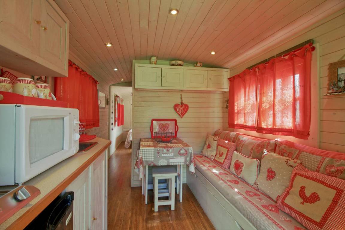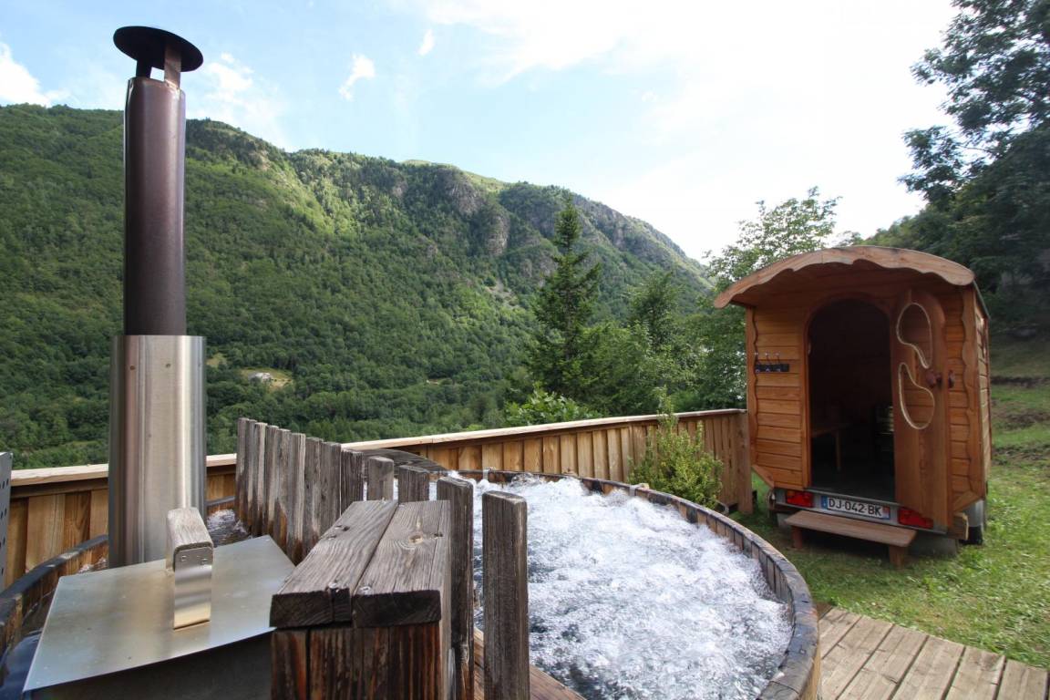 „Nous avons séjourné au sein d'une roulotte avec vue sur la montagne. La propriétaire est très accueillante et très chaleureuse. Nous nous sommes vite sentis à l'aise. Nous avons pu venir avec notre chien sans aucune difficulté. La propreté était parfaite et le bain romain disponible à la réservation est une expérience extra. Nous reviendrons avec grand plaisir.“