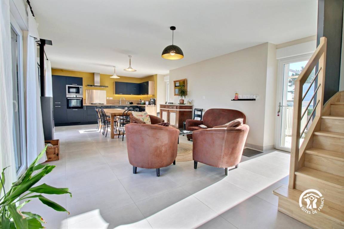 „Accueil très chaleureux par les propriétaires, très bon contact.La maison est spacieuse, très propre et très bien agencée, rien ne manque, draps, linge de toilette fournis, un plus.Magnifique vue sur la mer d'un côté, d'où nous avons apprécié, quand le temps le permettait, des levers et couchers de soleil magnifiques, une terrasse et un petit jardin de l'autre côté avec possibilité de garer la voiture.Endroit très tranquille avec les commerces dans un rayon de 400m. Nous recommandons ce gite.“