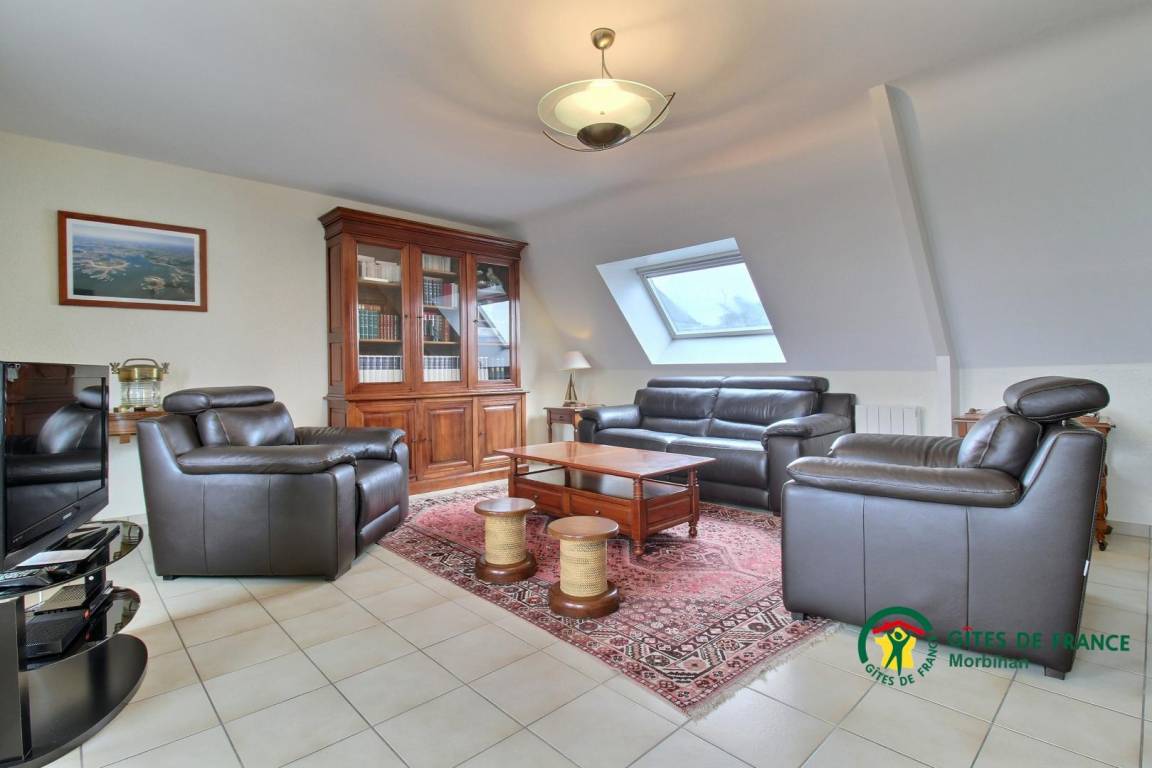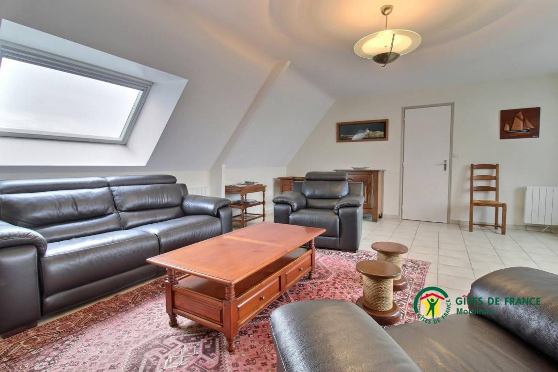 Lust auf einen Urlaub am Meer? Verbringen Sie ihn in dem hübschen Fischerdorf Gâvres. Er liegt auf der gleichnamigen Halbinsel. Das Dorf ist über eine 5km lange Landzunge erreichbar, an der sich ein langer Strand mit weißem Sand befindet. Wohin man auch schaut, der Ausblick ist herrlich: langer Strand mit feinem Sand in Südlage, im Norden liegt das Kleine Meer von Gâvres, und in der Ferne erblickt man die Insel Groix. Das Binnenmeer wird auch 'Petite Mer' genannt, und das ist bei Ebbe ein Paradies für Strandfischer, bei Flut ein Paradies für Kiteboardsurfer. Nach Lorient oder Port-Louis kommt man mit dem Batobus von Gâvres.Ferienhaus: Erdgeschoss: Küche mit Essbereich und Wohnbereich mit Zugang zur Terrasse und einem geschlossenen Garten. 2 Zimmer (1 Zimmer mit 1 Bett 140 und 1 Zimmer mit 2 Betten 90), Bad mit Dusche und separates WC. 1. Stock: Großes Wohnzimmer mit Balkon (kleiner Meerblick), 1 Zimmer mit Bett 160, WC mit Handwaschbecken. Geschlossene Garage. Zuzüglich Nebenkosten.