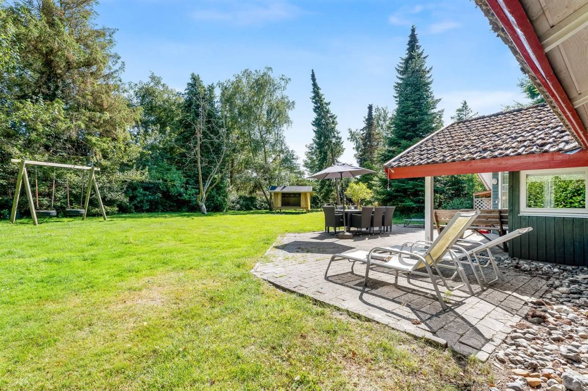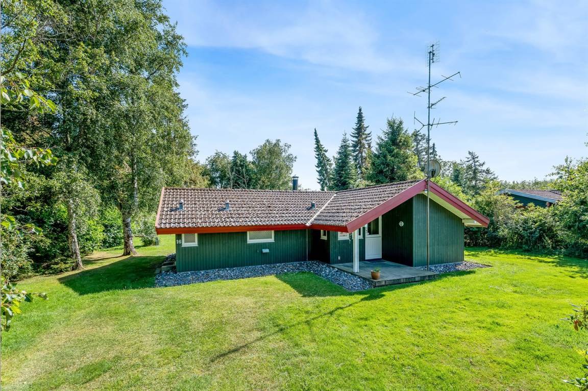 Herrliches Ferienhaus aus Holz, 1989 gebaut, auf einem Naturgrundstück gelegen. Zum Haus gehört ein sowohl offenes als überdachtes Terrasseareal mit Gartenmöbeln, herrliche nach Süden gelegene Terrasse und Windschutzhütte.
