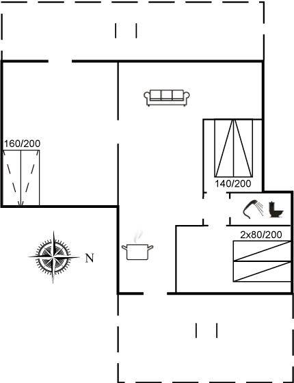 SchlafverhältnisseDie Schlafplätze verteilen sich auf 2 Schlafräume. 4 Schlafplätze in Doppelbetten. 2 Schlafplätze in Einzelbetten. 2 von diesen Schlafplätzen befinden sich im Wohnzimmer. Ferner steht ein Kinderbett zur Verfügung.