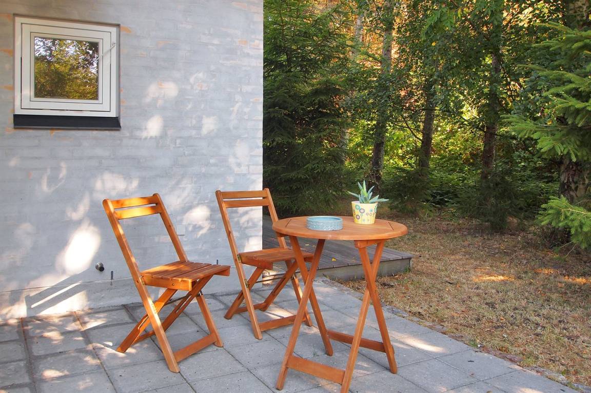 DraußenDie Ferienunterkunft liegt auf einem 1000 m² großen Naturgrundstück. Die Entfernung zum Meer beträgt 150 m. Die nächste Einkaufsmöglichkeit liegt 5000 m entfernt. Es steht ein 50 m² Terrassenareal zur Verfügung. Geräteraum. Parkplatz auf dem Grundstück.