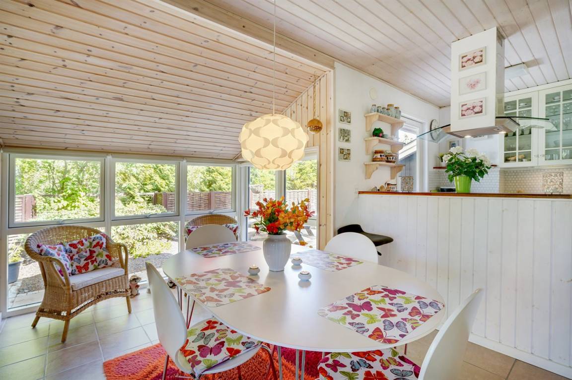 „Advice to other guests: Fantastisk beliggenhed lige ved vandet - der skal ikke pakkes og planlægges en masse, og det betyder, at man kan bruge stranden flere gange på en dag, selvom der er små børn med. Super skønt og hyggeligt indrettet hus, fint veludstyret køkken, rent og lækkert og med masser af opbevaringsmuligheder. Der er generelt lidt køligt i huset, selvom det er i juli måned - og der er fodkoldt, så husk et par indesko. Vi var uheldige med flere flåtbid på første dag rundtur i haven, så vær opmærksom på det. Der er til gengæld god mulighed for at se de 'vilde' dyr helt tæt på. The vacation at the holiday home: Vi fik desværre flere flåt-bid allerede ved første rundtur i den lille have, så den brugte vi slet ikke resten af ugen. Ret ærgerligt da vi havde en 5-årig med som gerne ville udfolde sig. Forhaven kunne ikke rigtig bruges til dette. Huset var det reneste sommerhus, jeg nogensinde har set - og et utrolig godt udstyret køkken, hvor der var tænkt på det hele - lige bortset fra små skåle i køkkenet. De var savnet. Ellers virkelig funtionelt og godt gennemtænkt. Dejligt med så meget opbevaringsplads - også sjældent set før! :) Der var lidt mørkt og ret koldt i inde i sommerhuset da det ligger i skygge det meste af dagen - det var lidt uventet. Meget kolde stengulve som krævede at vi havde sko på. Vi synes ikke, vi burde skulle tænde brændeovnen midt i juli måned. Udemøblet på terrassen hvor der var sol og varmt nok til at være, var meget slidt (bord m. bænke) - afskallet maling mv. så det slet ikke kunne tørres af med en klud. En voksdug eller lign. som kunne smides henover ville have været en god idé. Departure and follow up: Det var lidt uklart, hvad der skulle ske med nøglen - der stod i en mail et sted, at den skulle afleveres i boks og med ny kode, men der var ingen instruktion i at lave ny kode, så det gjorde vi ikke. The holiday home itself: Skønt hus og dejligt indrettet med mange fine detaljer, gode opbevaringsmuligheder og god funtionalitet - men koldt og ret mørkt - også selvom solen skinnede en hel dag.“