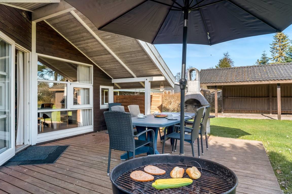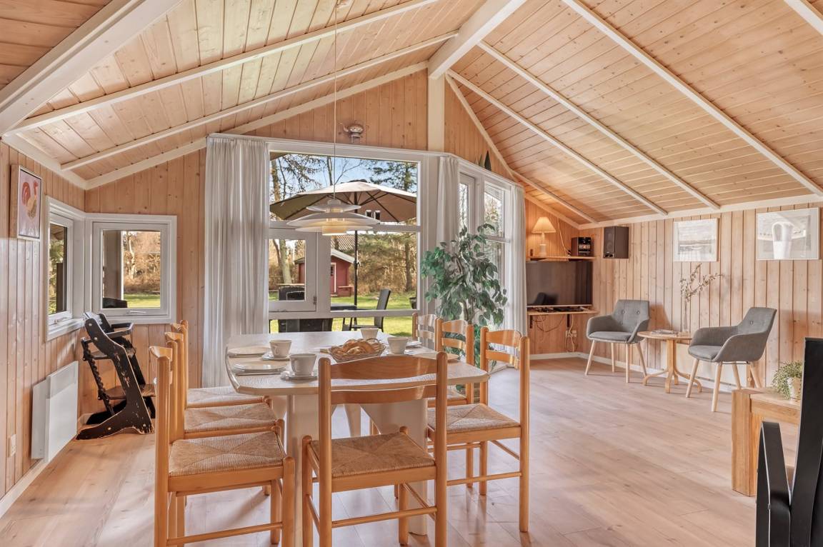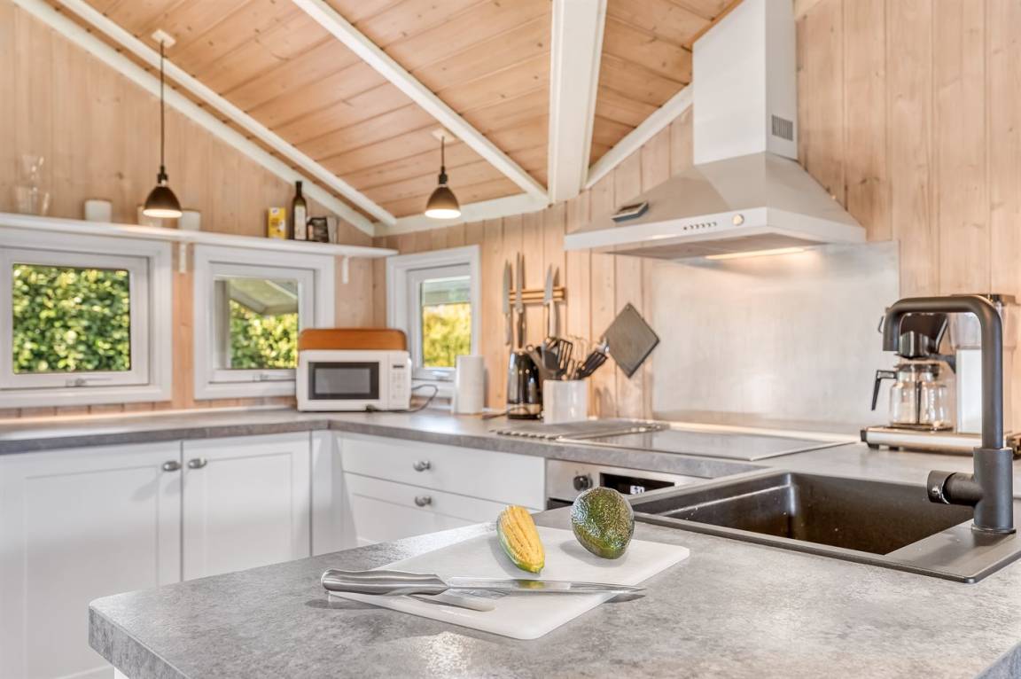 Ein wirklich schönes Ferienhaus aus Holz mit sowohl offenen als auch überdachten Terrassenbereichen mit Gartenmöbeln auf der herrlichen, südlich ausgerichteten Terrasse. Ein gutes Ferienhaus als Ausgangspunkt für einen wunderbaren Urlaub.