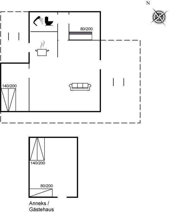 SchlafverhältnisseDie Schlafplätze verteilen sich auf 3 Schlafräume. 4 Schlafplätze in Doppelbetten.1 Schlafplatz in einem Einzelbett. 2 Schlafplätze in einem Etagenbett. 3 von diesen Schlafplätzen befinden sich im Gästehaus.