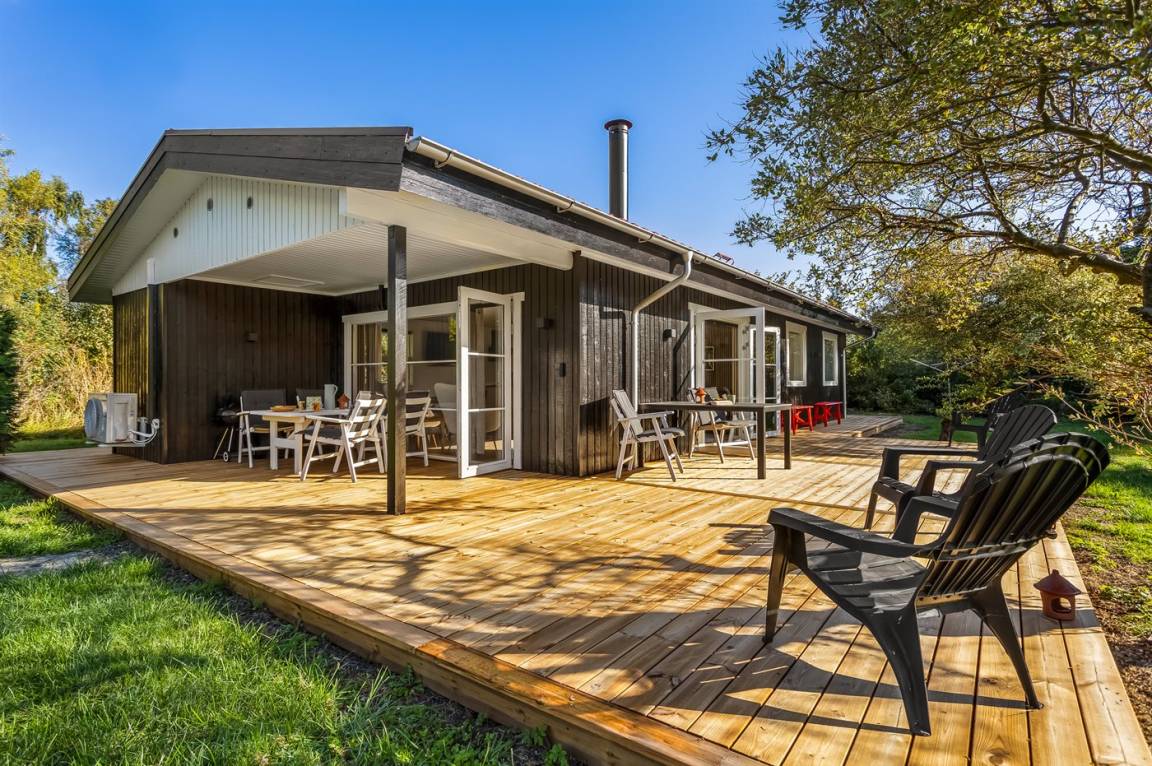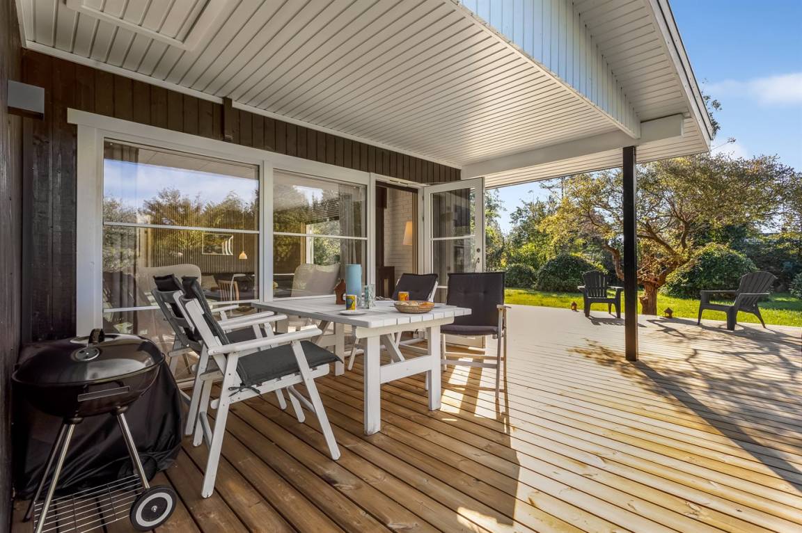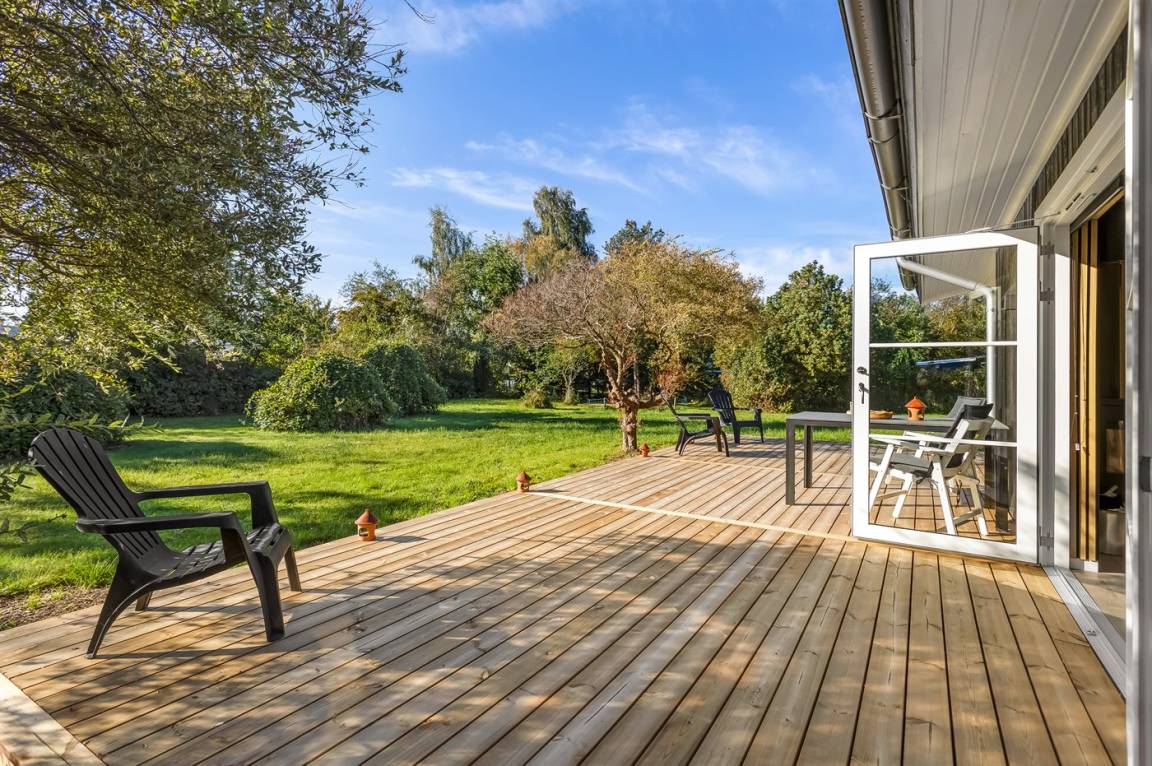 Rund um das Haus gibt es eine große Holzterrasse, die viel Platz für gemütliche Abende mit dem Grill bietet.