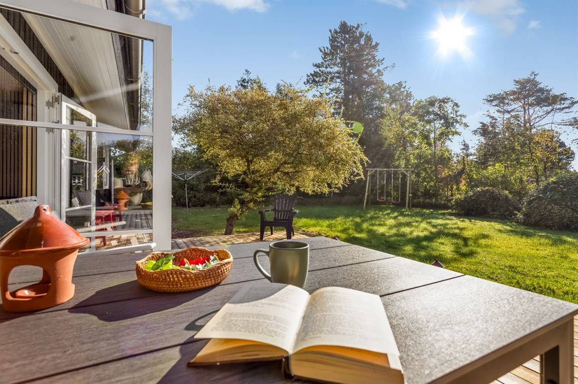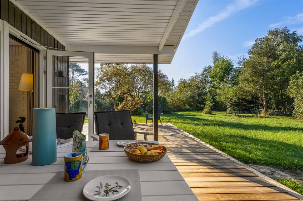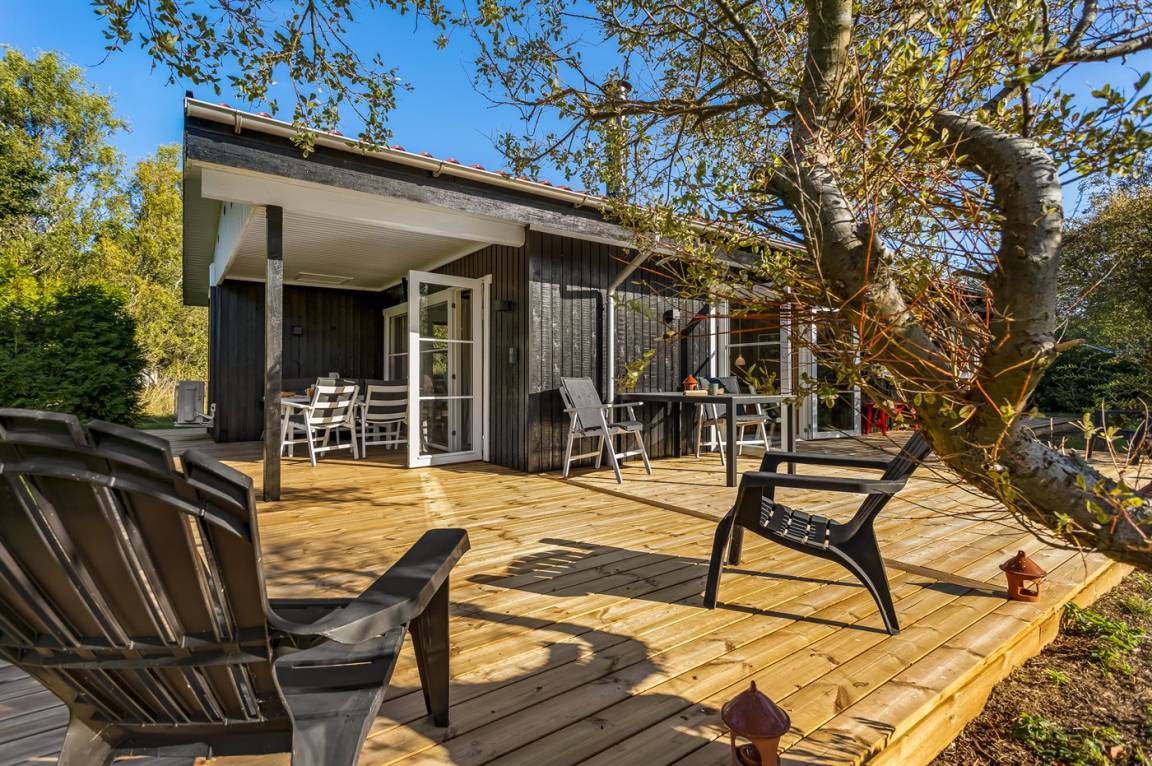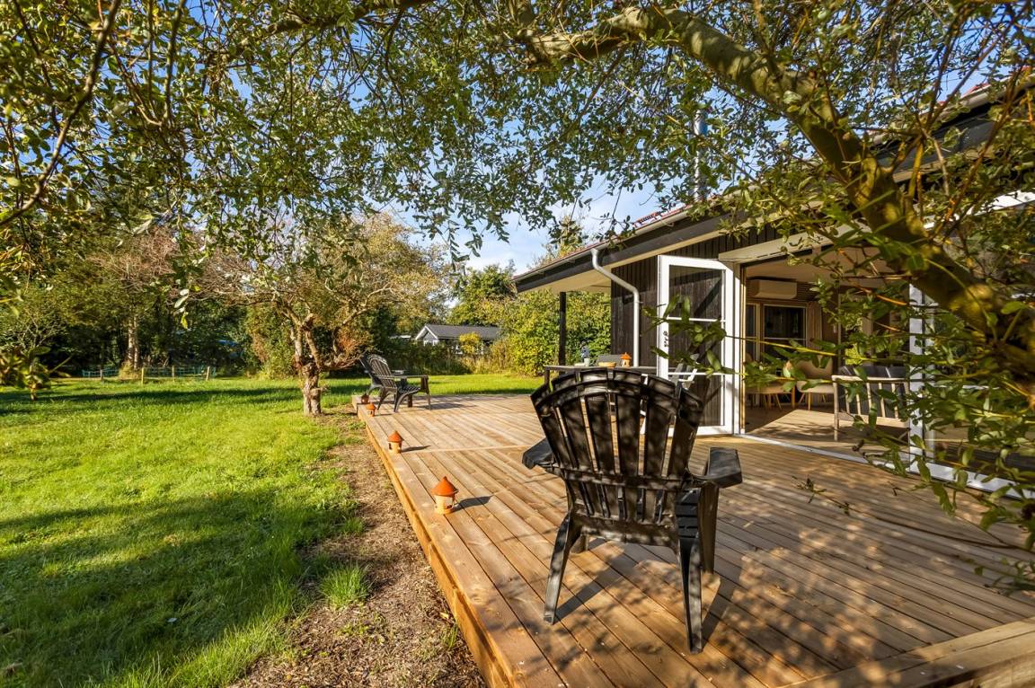 Rund um das Haus gibt es eine große Holzterrasse, die viel Platz für gemütliche Abende mit dem Grill bietet.