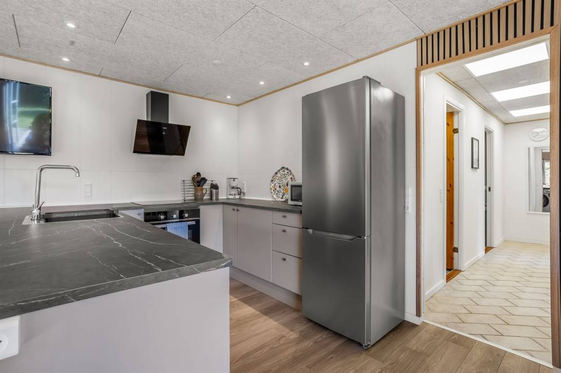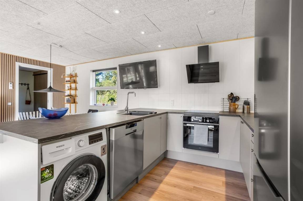 KücheDie Küche ist mit Kühlschrank ausgestattet. Außerdem gibt es 4 Induktions-Kochzonen, Umluftofen, Mikrowelle, Airfryer sowie Geschirrspüler, Kaffeemaschine, Toaster, Schneebesen und Waffeleisen.