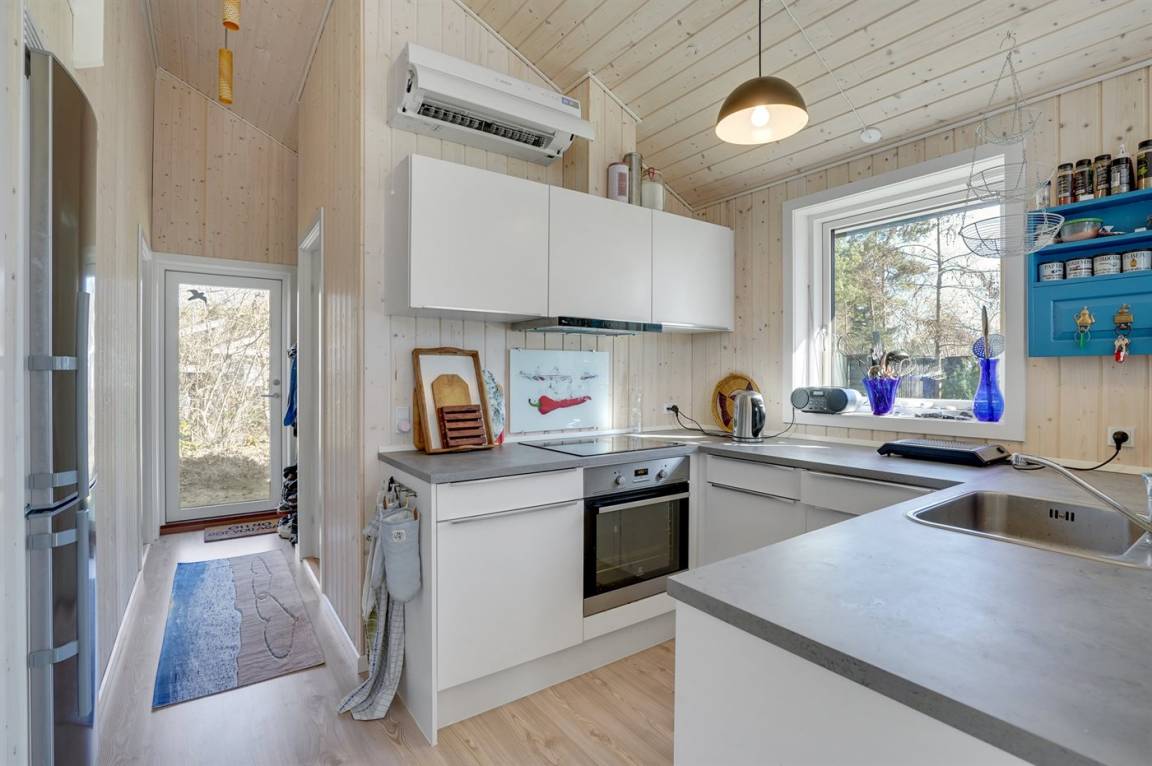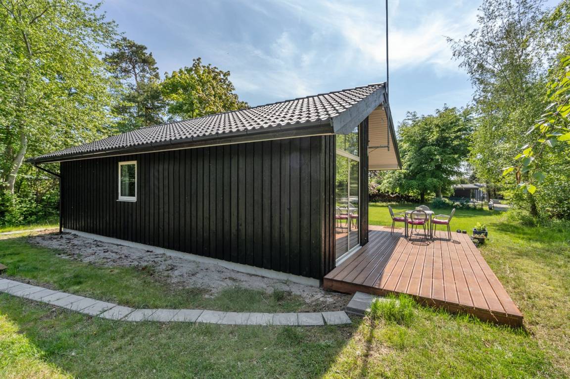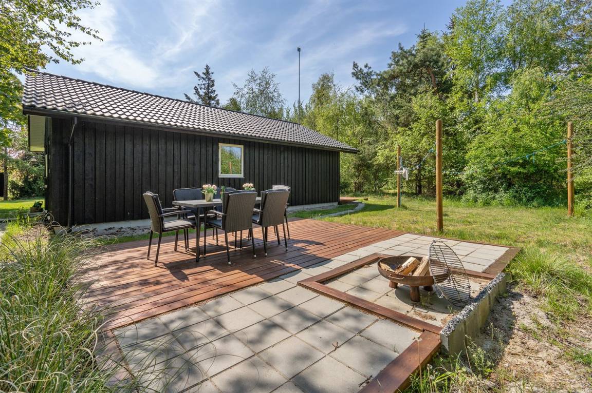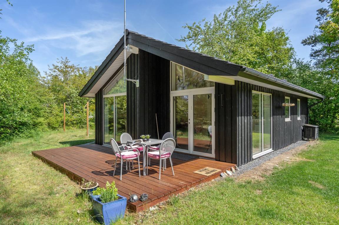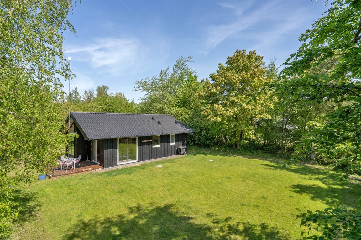Nur 200 vom Strand entfernt, in einem ruhigen Ferienhausgebiet in schöner Natur, finden Sie dieses attraktive Ferienhaus, 2020 gebaut. Das Grundstück ist eine Mischung aus Rasen und Naturgrund – und das Gebiet lädt zu lange Spaziergänge ein.
