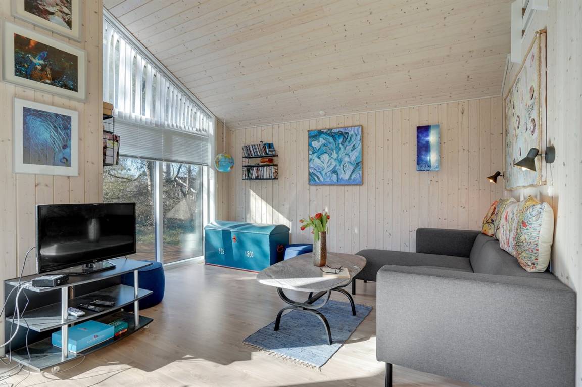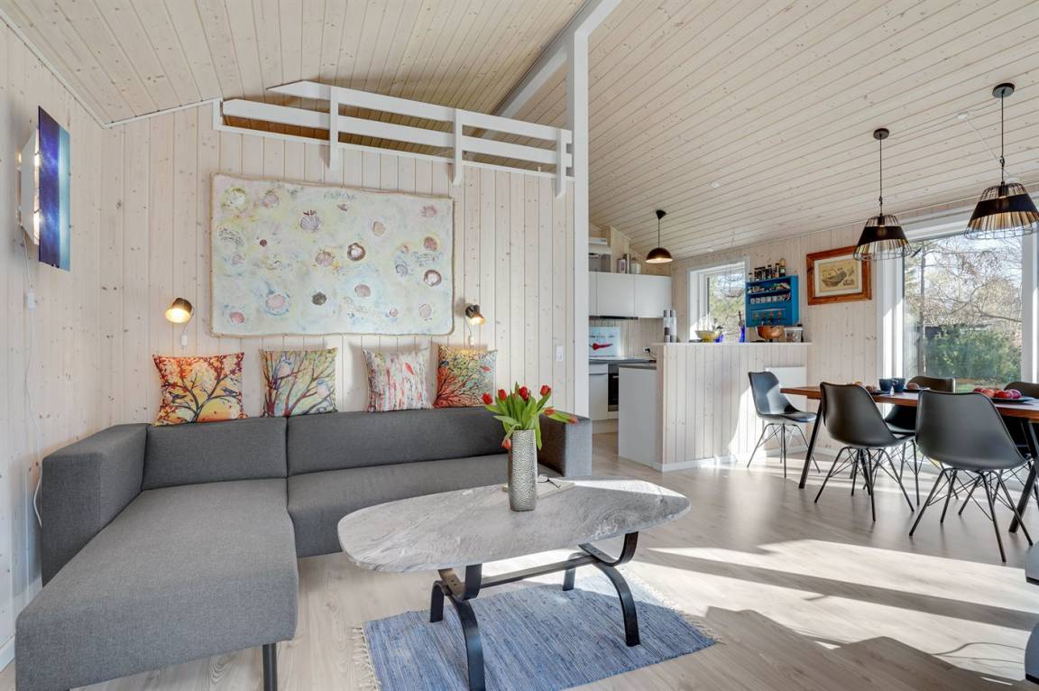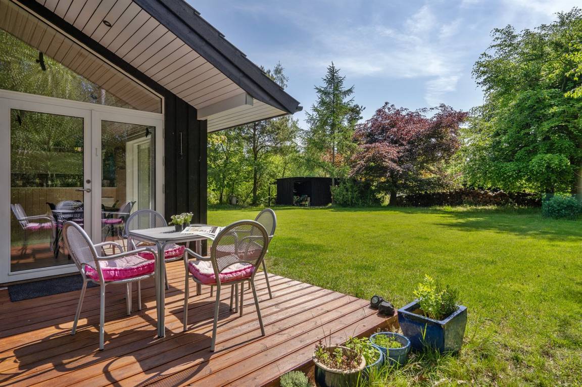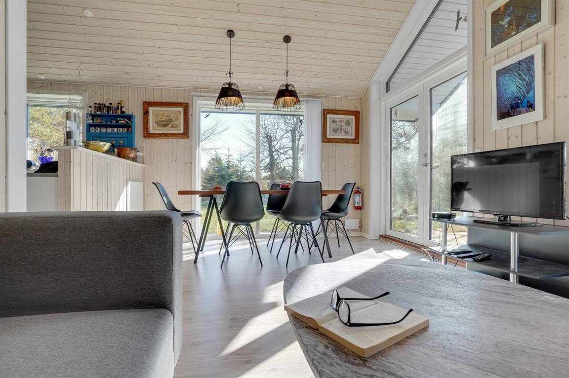 Nur 200 vom Strand entfernt, in einem ruhigen Ferienhausgebiet in schöner Natur, finden Sie dieses attraktive Ferienhaus, 2020 gebaut. Das Grundstück ist eine Mischung aus Rasen und Naturgrund – und das Gebiet lädt zu lange Spaziergänge ein.