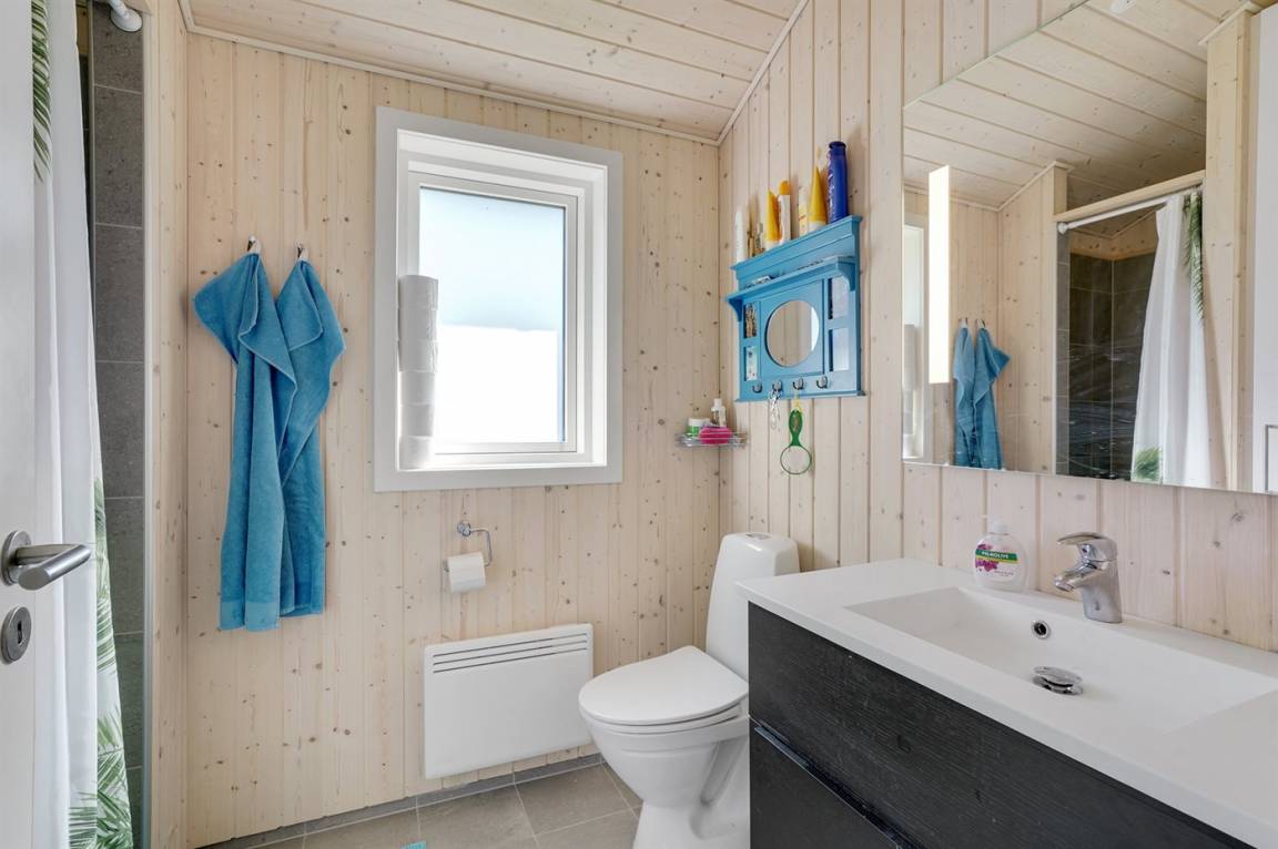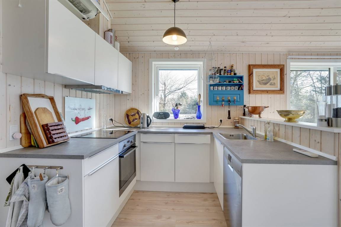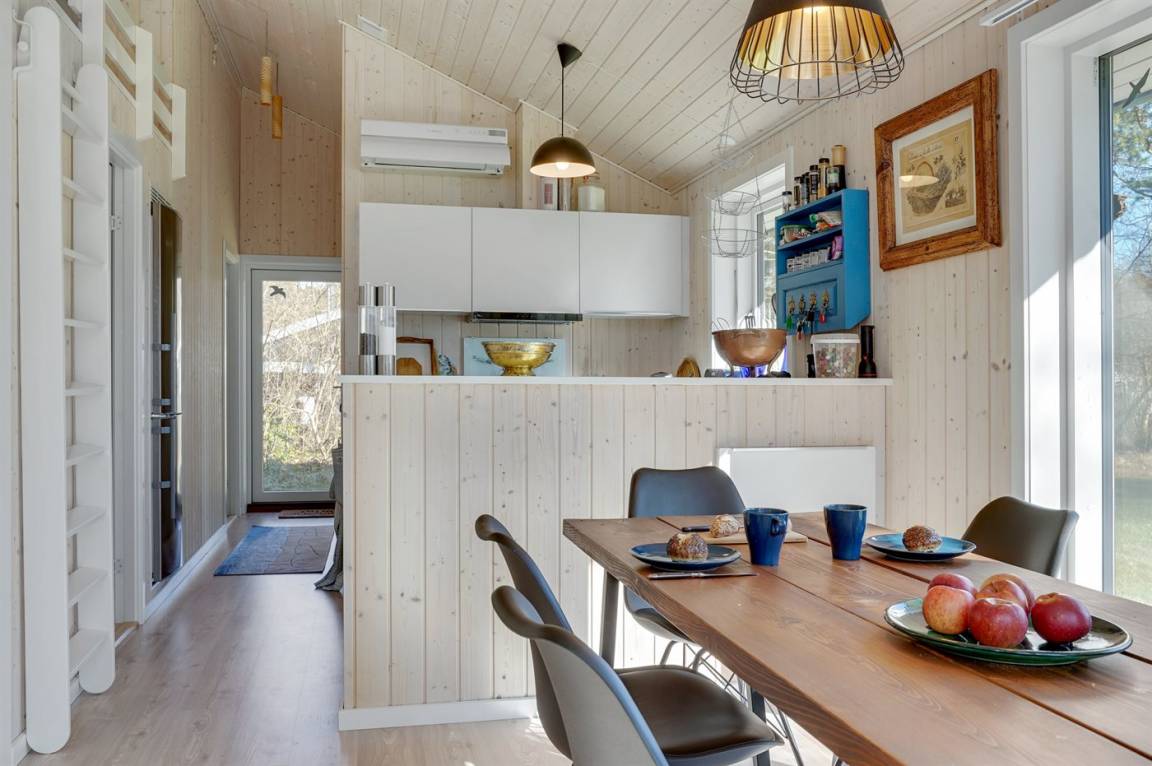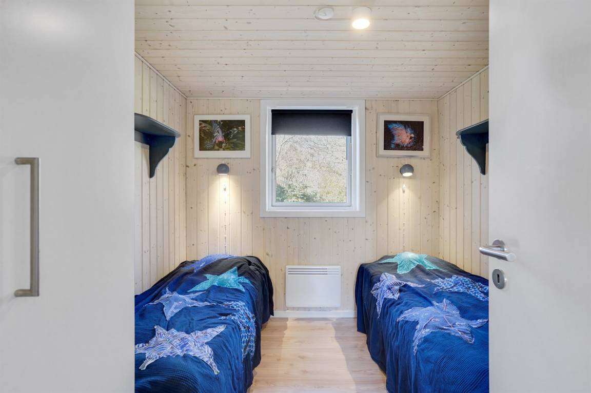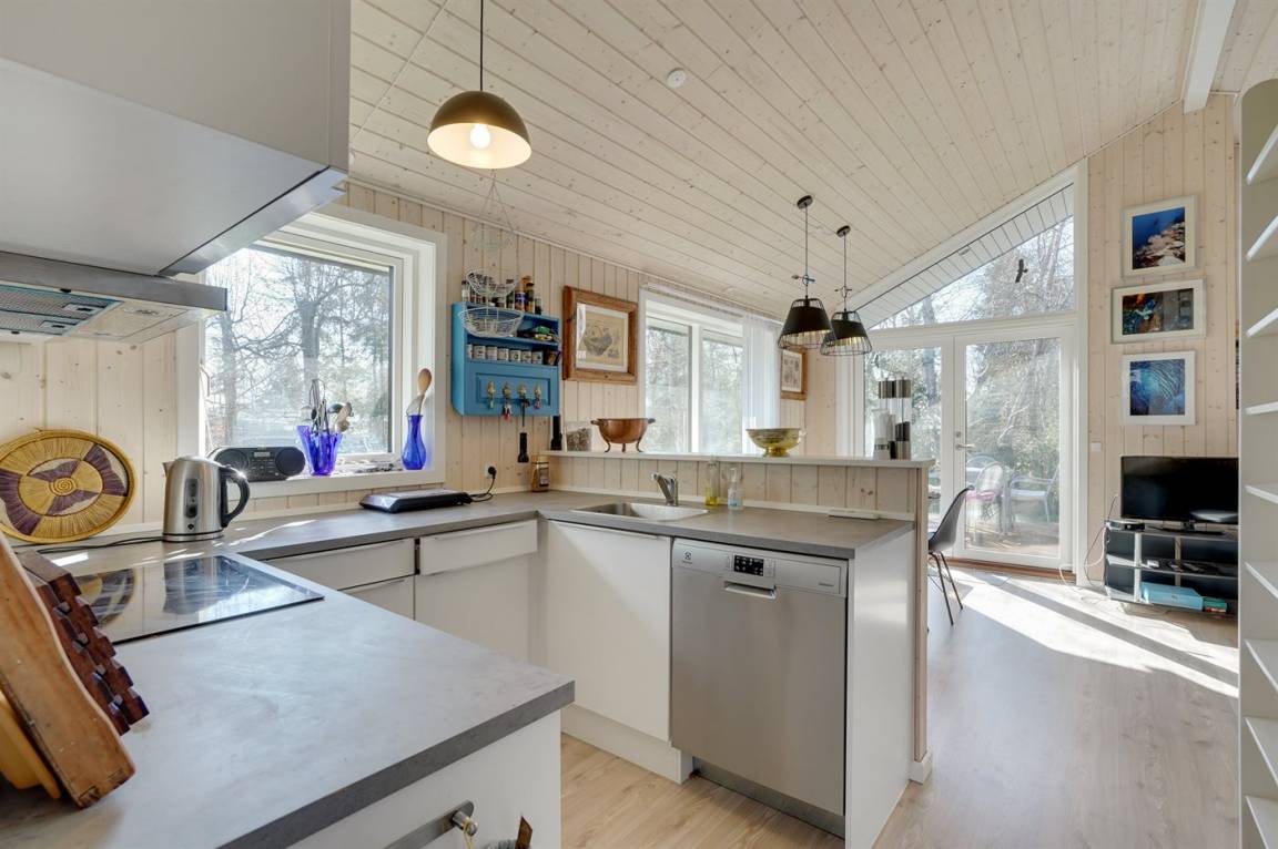 Nur 200 vom Strand entfernt, in einem ruhigen Ferienhausgebiet in schöner Natur, finden Sie dieses attraktive Ferienhaus, 2020 gebaut. Das Grundstück ist eine Mischung aus Rasen und Naturgrund – und das Gebiet lädt zu lange Spaziergänge ein.