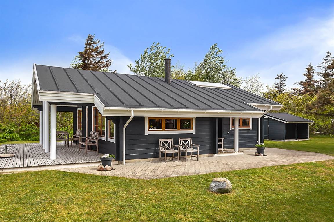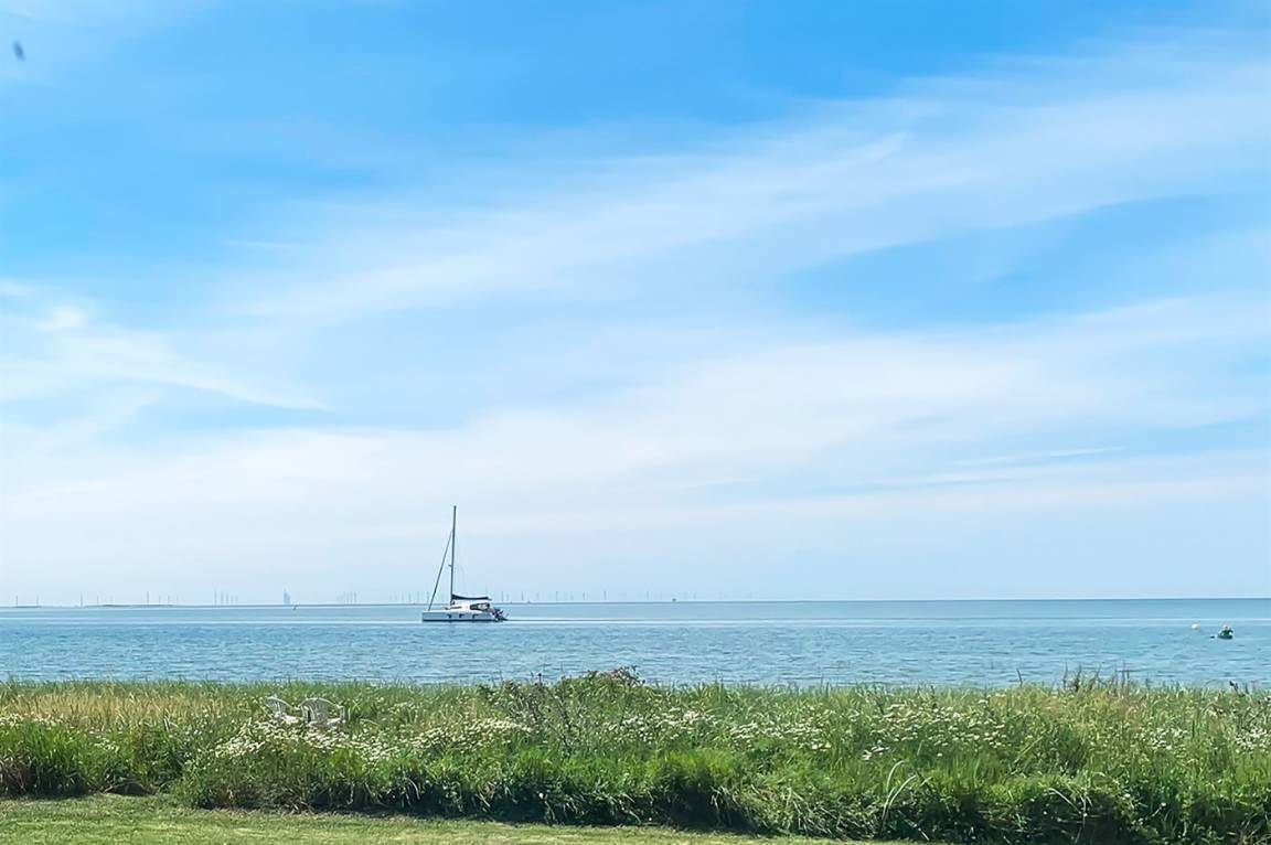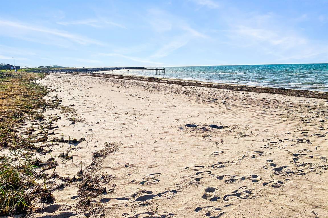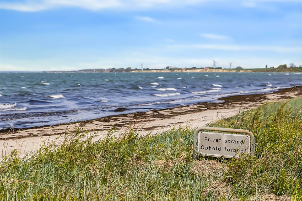 Die Ferienunterkunft liegt auf einem 1204 m² großen Naturgrundstück mit Privatstrand. Bis zum Meer sind es 10 m. Das nächste Geschäft ist 1000 m weit entfernt. Zur Ferienunterkunft gehört ein 50 m² großer, offener Terrassenbereich. Außerdem gibt es eine 20 m² große, überdachte Terrasse und eine Außendusche für den Sommer. Auch ein Weber-Kugelgrill steht zur Verfügung. Parkmöglichkeiten an der Ferienunterkunft.