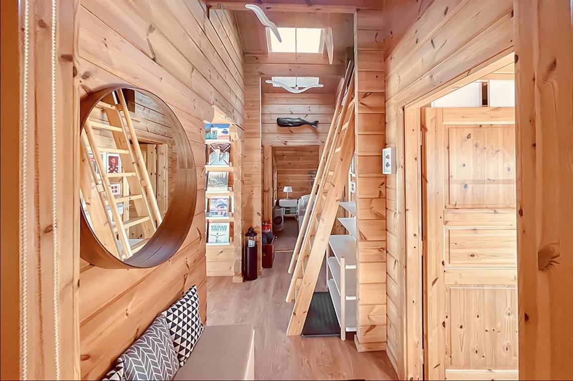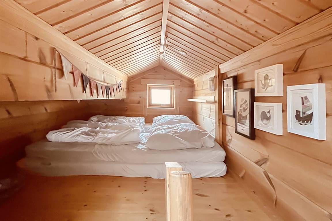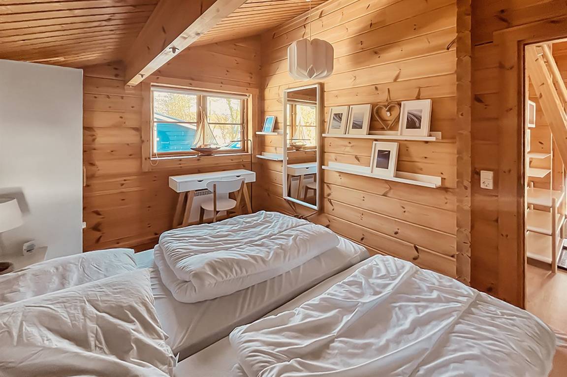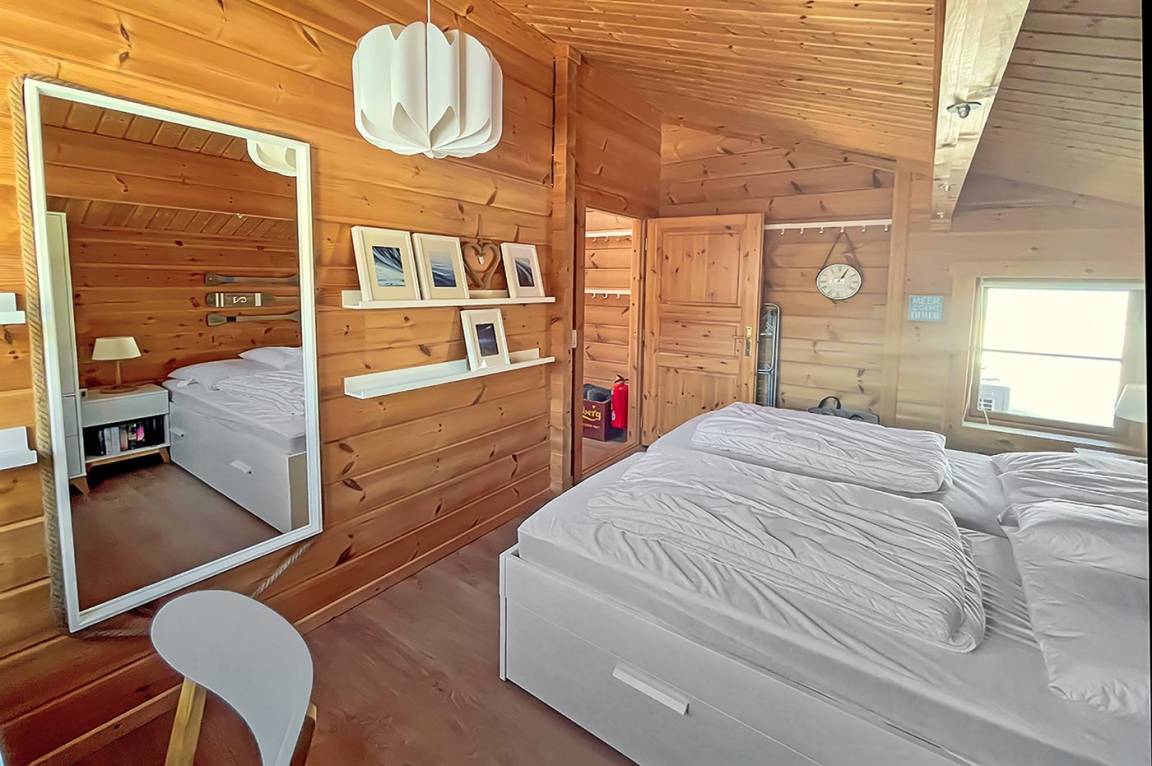 Das Haus ist mit 2 Schlafzimmern ausgestattet, beide mit Doppelbett. Zusätzlich befinden sich im offenen Obergeschoss noch insgesamt 2 weitere Schlafplätze auf Matratzen.