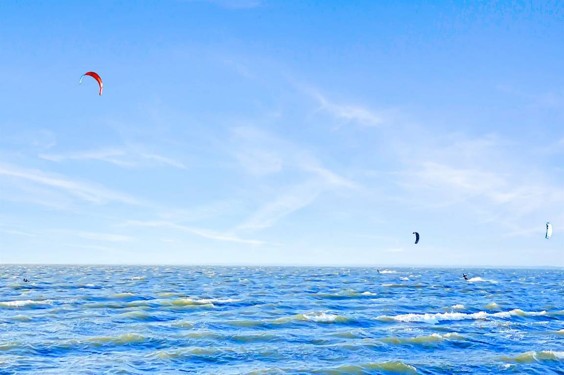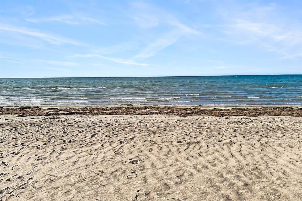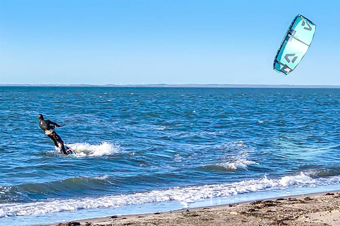 Am steinlosen, schönen Sandstrand wird das Wasser nur langsam tiefer. Die Sonne spiegelt sich den ganzen Tag im Wasser und geht am Abend direkt vor der Terrasse unter. Der Strand ist ideal zum Surfen und für Kinder geeignet.