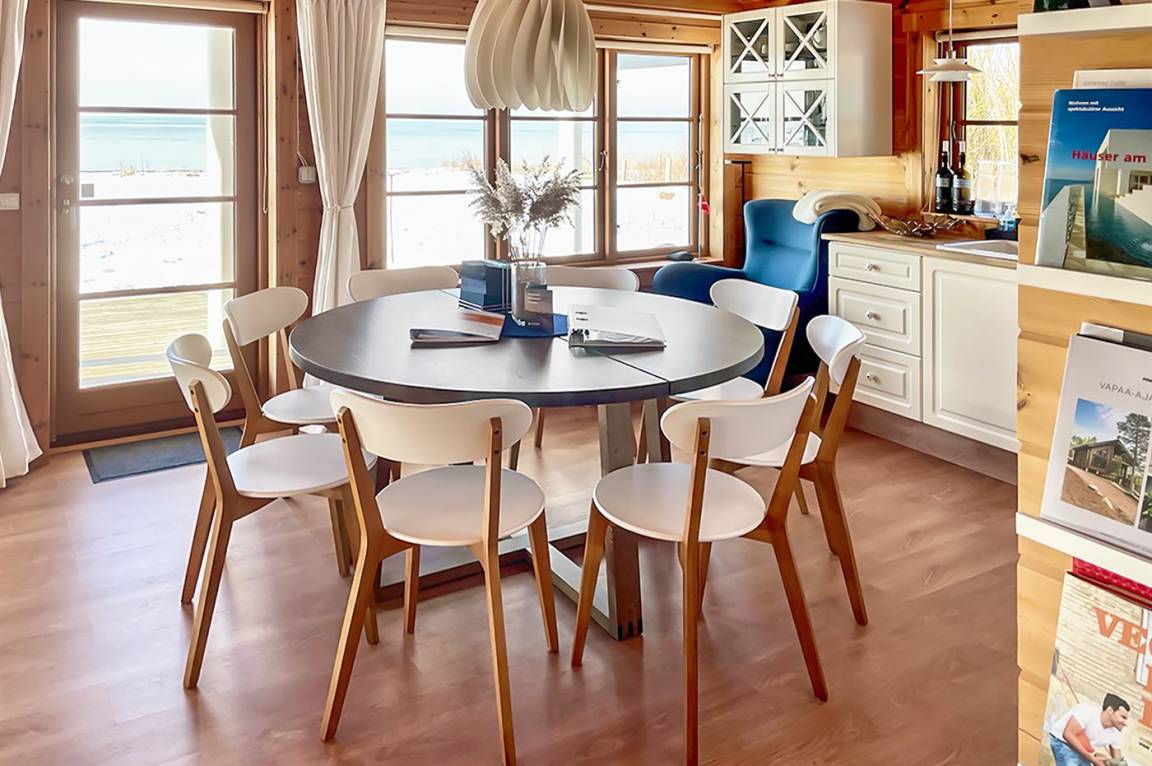 Tolles finnisches Blockhaus mit viel Charme, in einer ruhigen Gegend direkt an der Ostsee gelegen und nur 10 m vom Privatstrand und 200 m vom Jachthafen mit Slipanlage und Restaurant entfernt. Vom Wohnzimmer, der Küche und dem großen Schlafzimmer aus haben Sie eine tolle Aussicht auf die Ostsee.