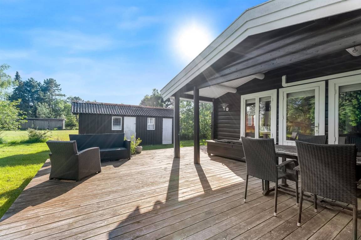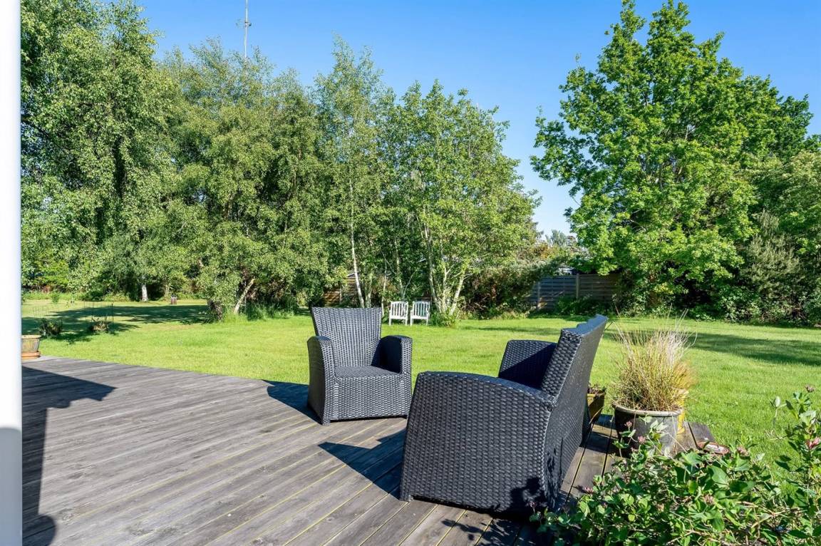 Zum Haus gehört eine große Terrasse, auf der es viel Platz für schöne Stunden im Freien gibt – hier kannst du die Sonne genießen, ein gutes Buch lesen und gemütliche Grillabende verbringen. Der Garten eignet sich hervorragend für Ballspiele und andere Aktivitäten im Freien.