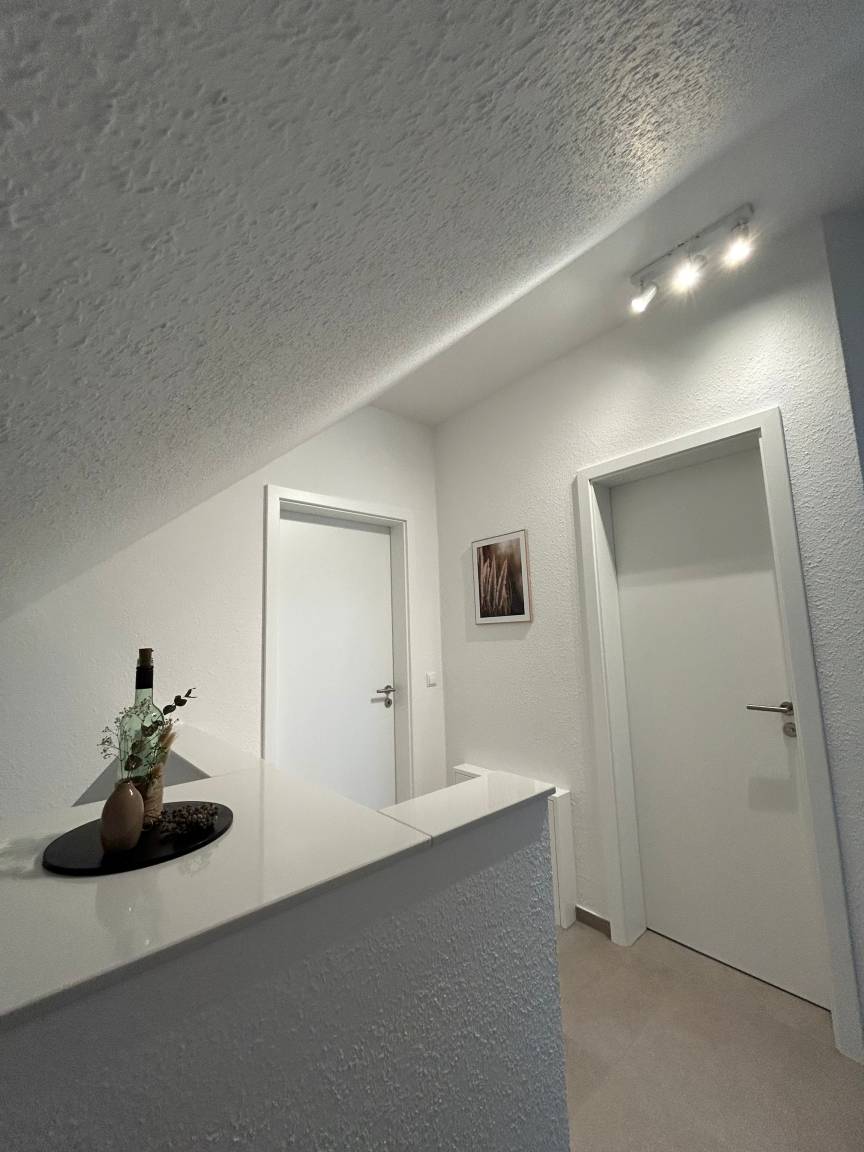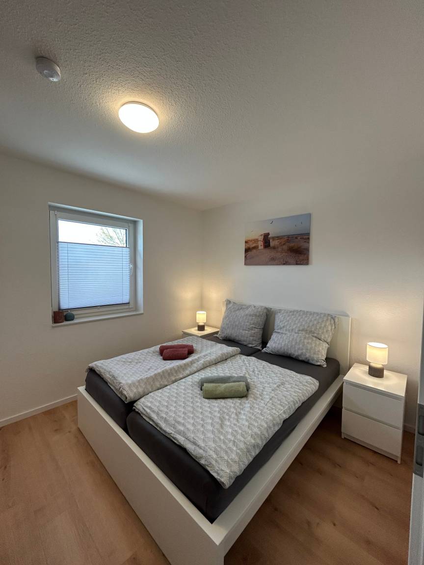Dazu stehen großzügige ca. 90 m² mit viel Licht und Raum auf zwei Ebenen bereit. Ein Schlafraum mit Doppelbett, ein Schlafraum mit 2 Einzelbetten, zwei Schlafräume mit jeweils einem Einzelbett, zwei Bäder mit Duschbad, eine separate, vollständig ausgestattete Küche (Herd, Backofen, Spülmaschine, Mikrowellenherd), Wohn- und Esszimmer stehen zur Verfügung. Jedes der Schlafzimmer ist mit einem TV ausgestattet. Wenn es einmal frisch wird, sorgt die Fußbodenheizung im gesamten Wohnbereich und vor allem im Bad für angenehme Wärme.