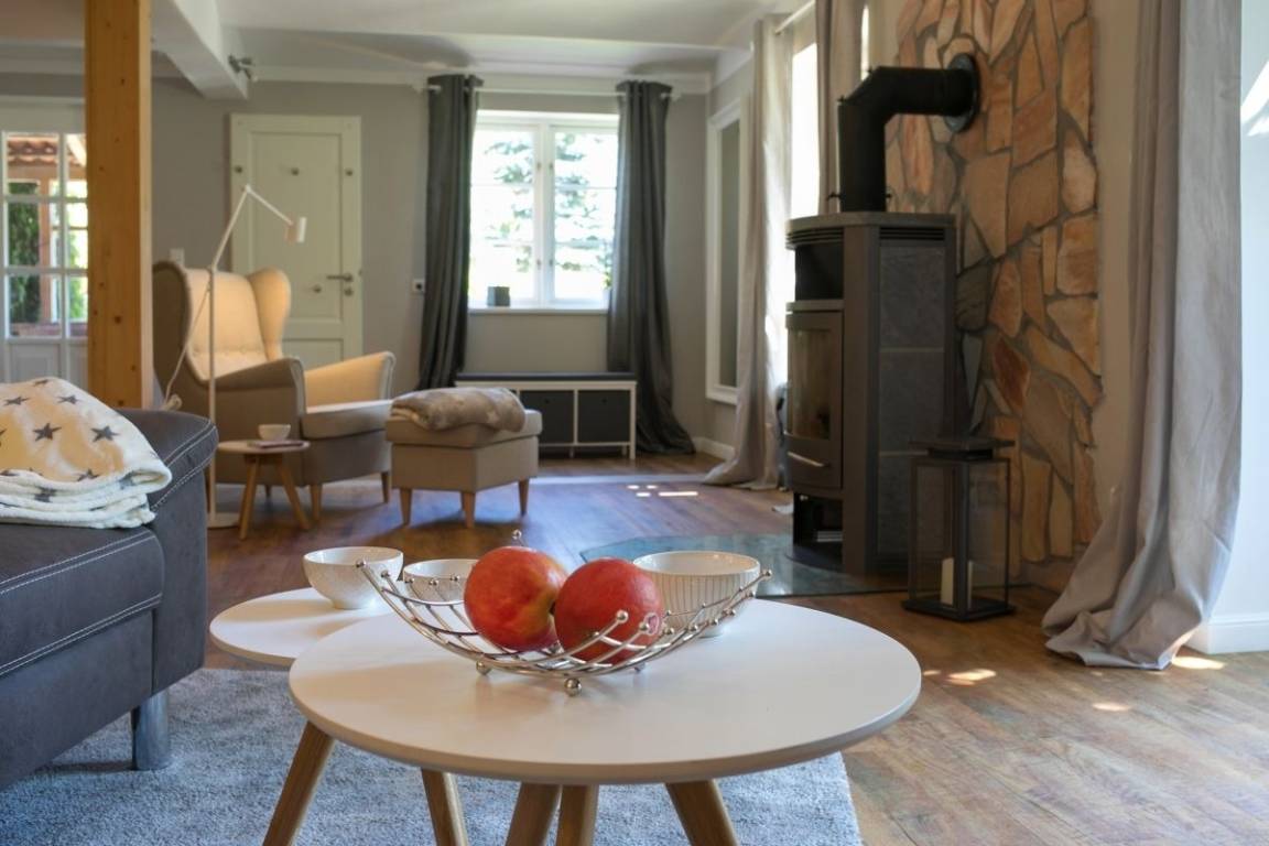 Die Ferienwohnung ist im Juli 2019 neu entstanden und verfügt über ein Boxspring Doppelbett, WLAN, TV, Internetradio, moderne voll ausgestattete Küche mit Geschirrspüler, Bügelbrett mit Bügeleisen, neuem Badezimmer mit Regendusche, Fußboden Heizung und Ofen.