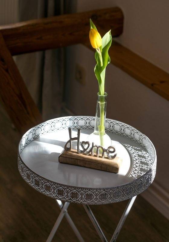 Die Ferienwohnung liegt im Erdgeschoss mit idyllischem Blick in den Garten und Pferdestall.