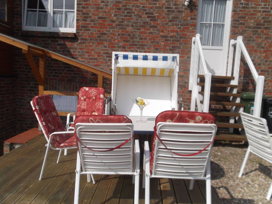 Es erwartet Sie eine voll ausgestattete Ferienwohnung mit Terrasse mit Strandkorb. Wir freuen uns auf ihren Besuch.