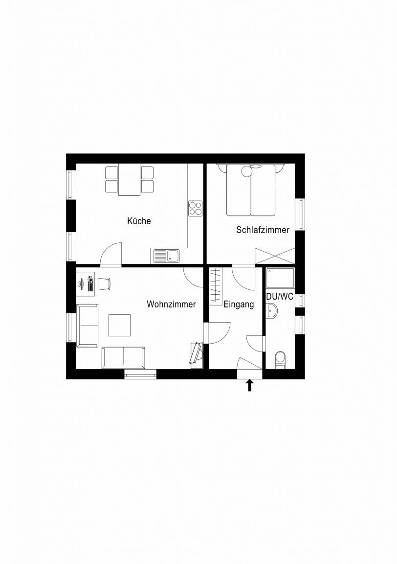Wohnzimmer, große Küche mit Essbereich, Bad mit Dusche, 1 Doppelschlafzimmer