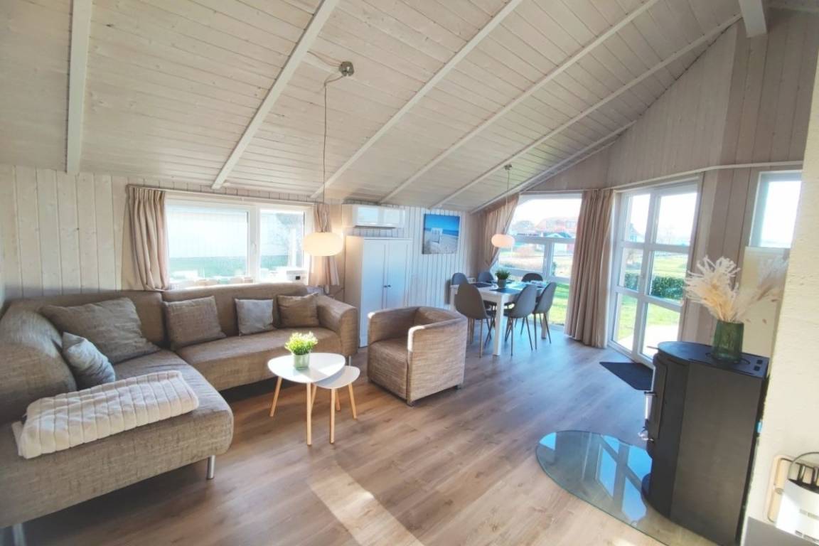 Nach einem Tag an der frischen Luft können Sie sich mit einem Saunagang verwöhnen. Vom Wohnzimmer haben Sie Zugang zu der Terrasse mit Blick auf den Strand. Hier können Sie beim Sonnenbaden die Aussicht genießen oder einen gemütlichen Grillabend mit Freunden und Familie verbringen. Das Hauptschlafzimmer bietet mit einem großzügigen, 1,60m breiten Boxspring-Doppelbett hervorragenden Schlafkomfort. Das kleinere Schlafzimmer ist mit zwei ebenfalls hochwertigen Betten (200cm x 80 cm) mit Toppern ausgestattet.