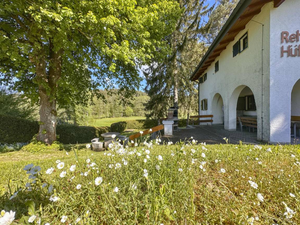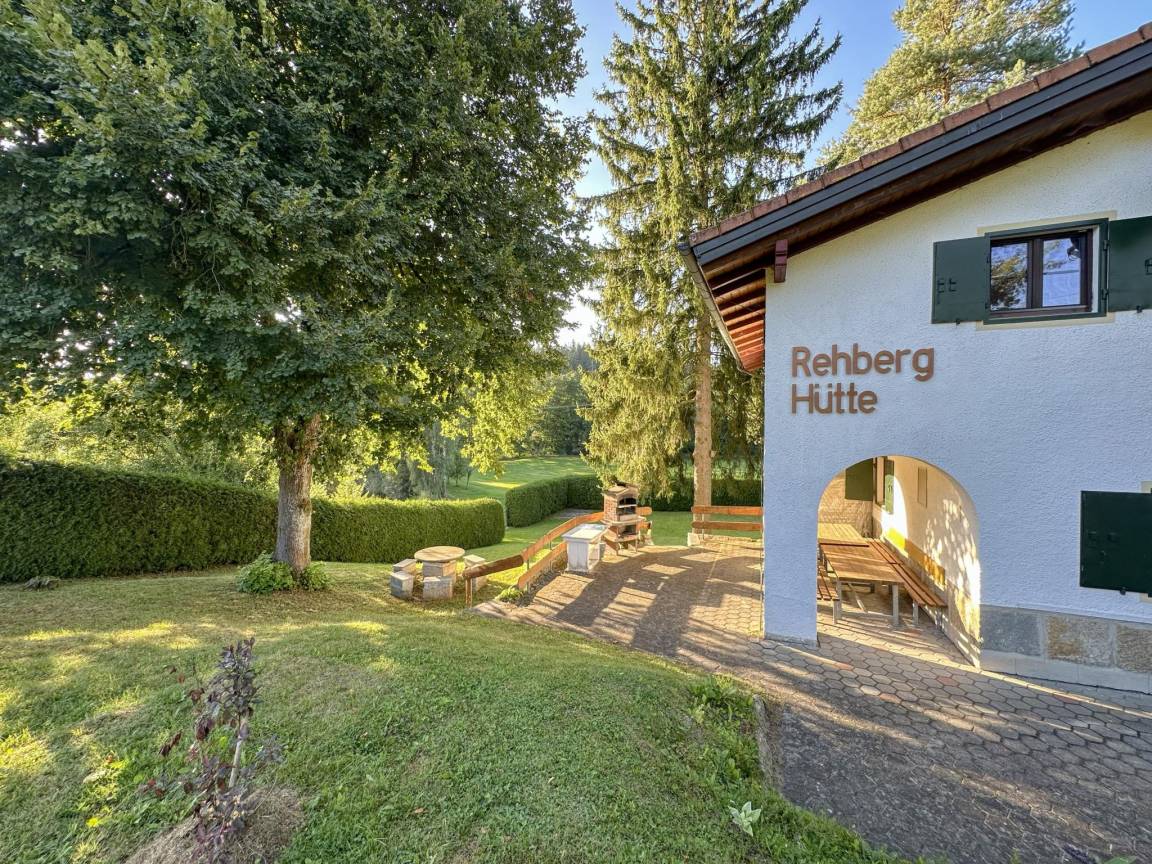 Hausbeschreibung : Die "Rehberg Hütte" in Bayern befindet sich im kleinen Ortsteil Unterrehberg und liegt idyllisch im Zottbachtal auf einem 2.000m² großen, komplett eingezäunten Grundstück in einzigartig ruhiger Alleinlage. Das Haus verbindet Charme und Komfort – ideal für Familien, Gruppen und Hundebesitzer. Ein großer Aufenthaltsraum mit Küchennische, zwei überdachte Terrassen, Sitzgruppen, Grill, Tischtennis und ein alter Baumbestand sorgen für echtes Hüttenfeeling und erholsame Tage inmitten der Natur