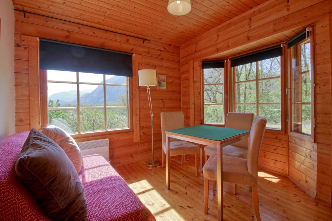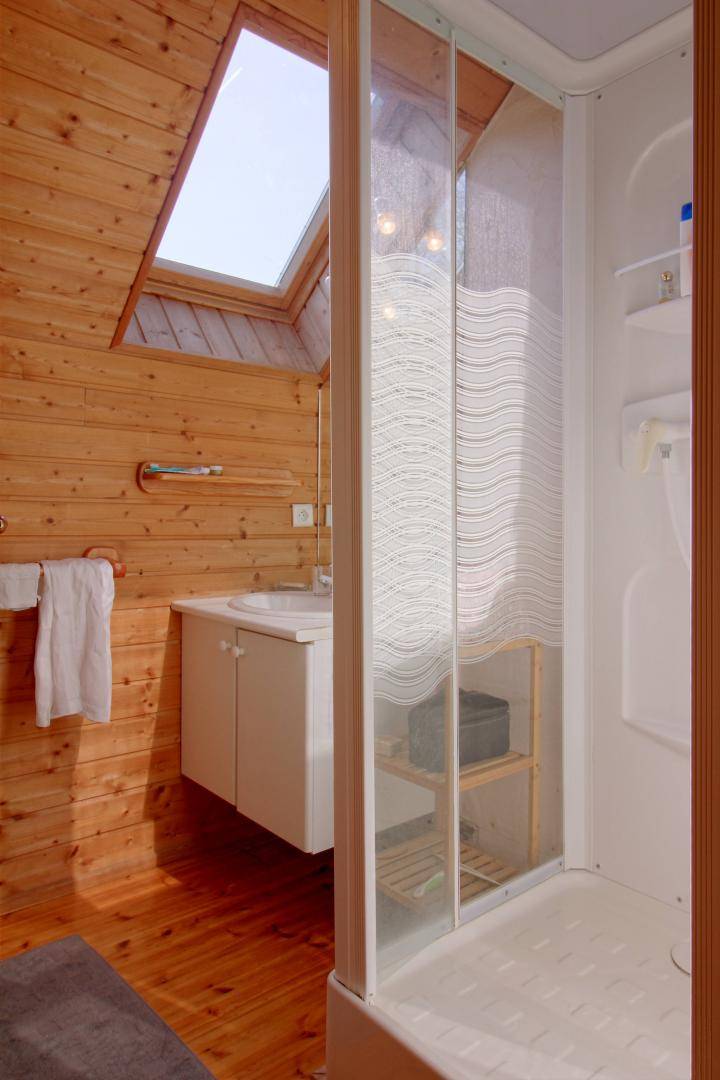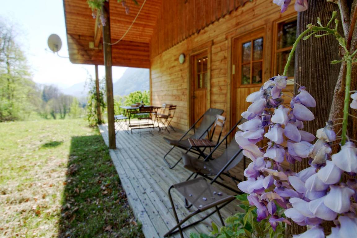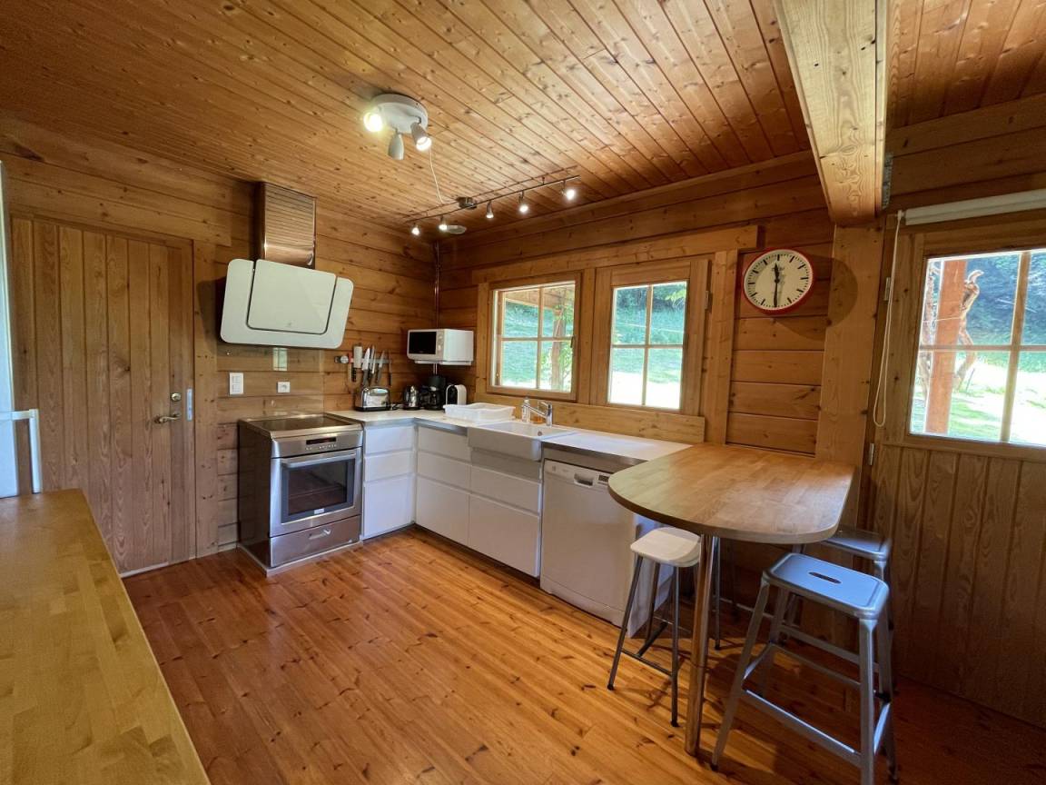 „Un chalet au calmeUn environnement verdoyant Un bel équipement dans la cuisine Un chalet entretenu Un peu chaud à l étage dans les chambres l été“