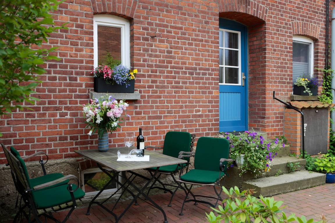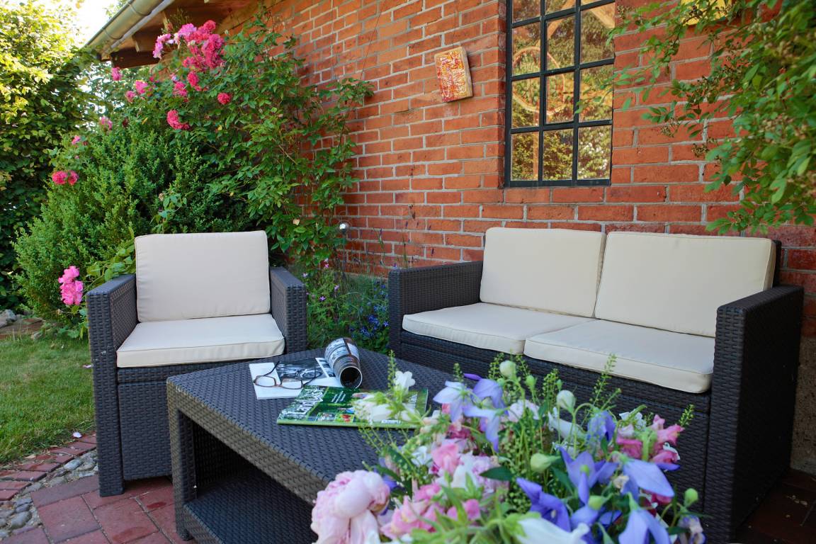 Vor dem Haus steht Ihnen eine schöne Terrasse zur Nutzung zur Verfügung.