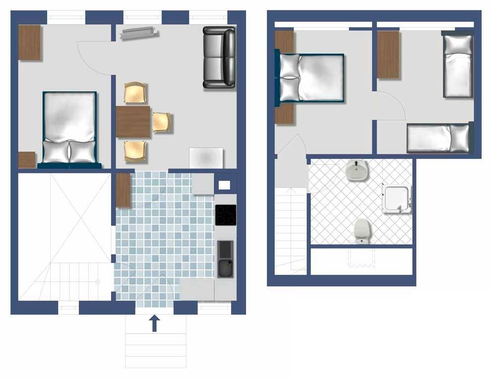 In der komfortabel und gemütlich eingerichteten Wohnung haben Sie Platz zum Wohlfühlen und Entspannen! Es stehen zwei Ebenen mit rund 65qm zur Verfügung. Bis zu 5 Personen können bequem untergebracht werden. Im Erdgeschoss befindet sich neben Küche und Wohnzimmer ein Schlafzimmer mit 2 Betten. Im Obergeschoss befinden sich zwei weitere Schlafzimmer (1x Doppelbett, 1x 2 Einzelbetten) sowie das Bad mit Dusche/WC.