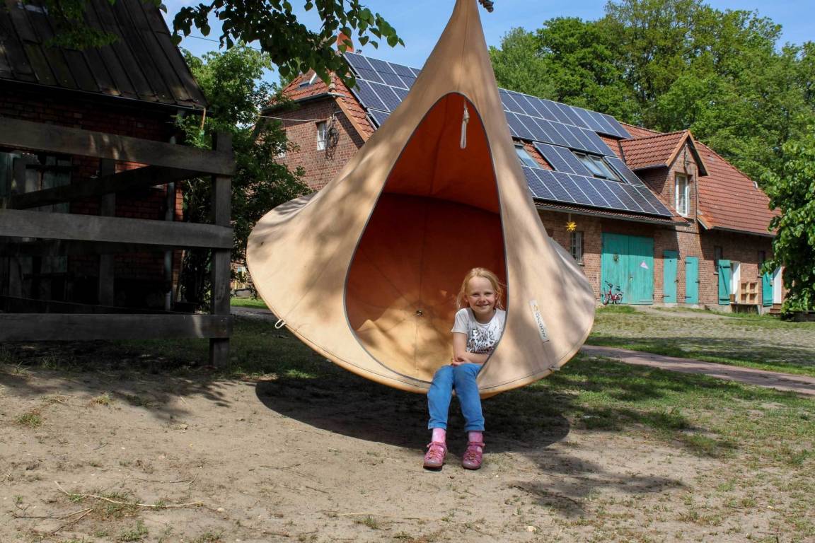 Rund um die Rübenburg gibt es jede Menge zu erleben. Das weitläufige Grundstück ist ursprünglich und natürlich geblieben. Im Klettergarten lässt es sich herrlich toben, im Badeteich mit den Fröschen um die Wette schwimmen. Wer Lust hat, macht sich im Bio-Garten nützlich. Zusätzlich hält die große Holzscheune Fahrgeräte etc. zum Spielen bereit.