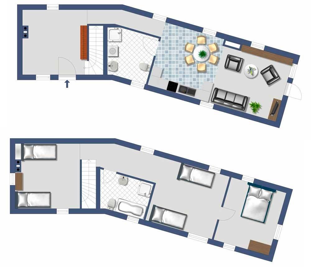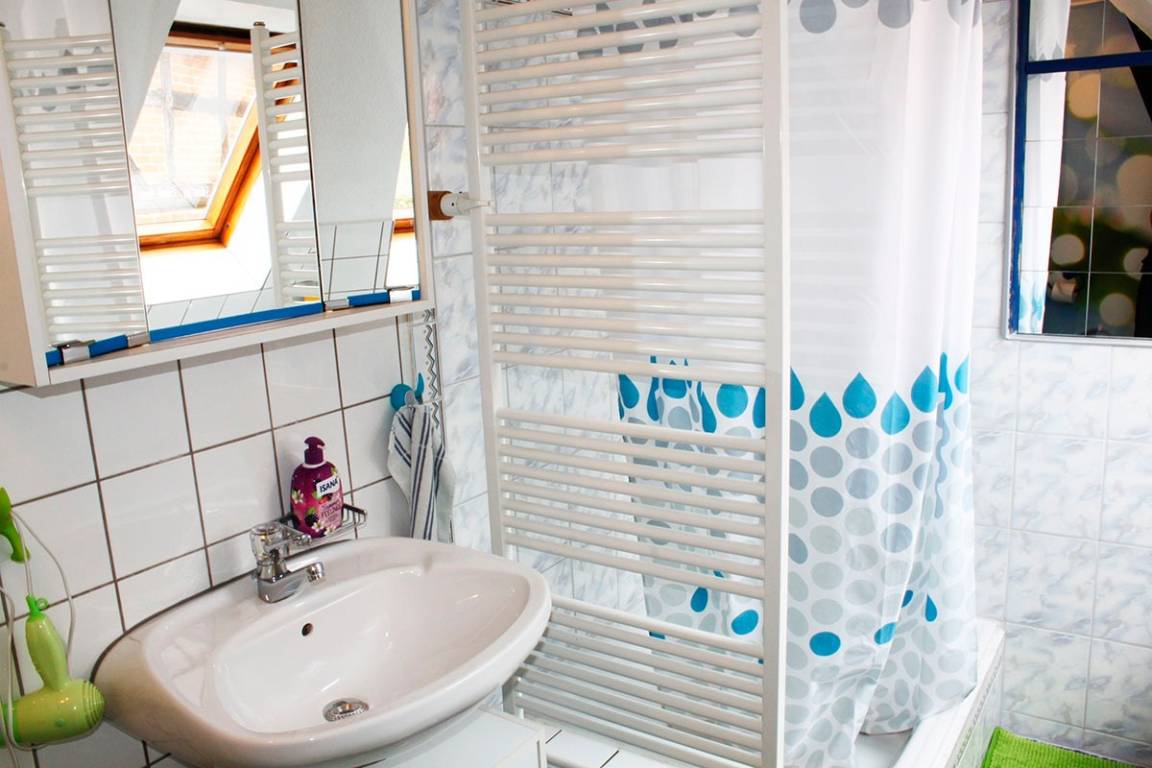 In dem gemütlich eingerichteten Haus haben Sie viel Platz zum Wohlfühlen und Entspannen! Es stehen zwei Ebenen mit über 100qm zur Verfügung. 4-6 Personen können bequem untergebracht werden. Im Erdgeschoss befinden sich ein geräumiger Flur, ein Bad mit Dusche/WC und Waschmaschine sowie das große Wohnzimmer mit offener Küche. Im Obergeschoss stehen drei Schlafzimmer (1x Doppelbett, 2x 2 Einzelbetten, davon ein Durchgangszimmer) und ein weiteres Bad mit Dusche/Wanne/WC zur Verfügung.