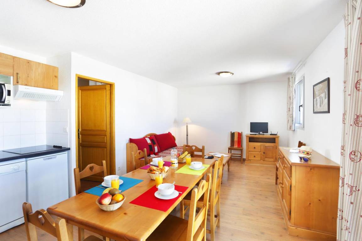 Fläche von ungefähr 55 m². Wohnzimmer mit Ausziehschlafcouch für 2 Personen. Schlafzimmer mit Doppelbett. Schlafzimmer mit 2 Einzelbetten. offener Schlafbereich mit 2 Stockbetten. Küche mit Kaffeemaschine, Toaster, Geschirrspülmaschine, Mikrowellenherd, Glaskeramikkochfelder, Kühlschrank. Badezimmer mit Badewanne oder Dusche. separates WC. Balkon. Die oberen Betten sind nicht für Kinder unter 6 Jahren geeignet.