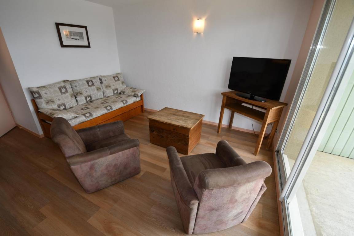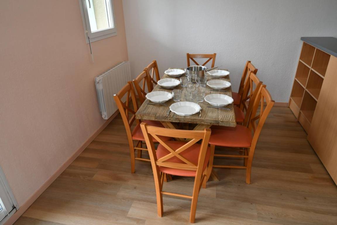 Fläche von ungefähr 52-60 m². Wohnzimmer mit Klappschlafcouch. 2 Schlafzimmer mit Doppelbett oder 2 Einzelbetten. offener Schlafbereich mit 2 Stockbetten. Kochnische mit Wasserkocher, Kaffeemaschine, kleiner Backofen mit Mikrowellenfunktion, Toaster, Geschirrspülmaschine, Glaskeramikkochfelder, Kühlschrank. Badezimmer mit Badewanne, WC. Die oberen Betten sind nicht für Kinder unter 6 Jahren geeignet.