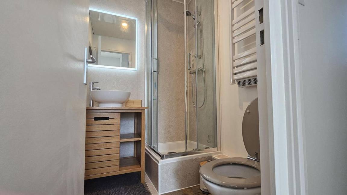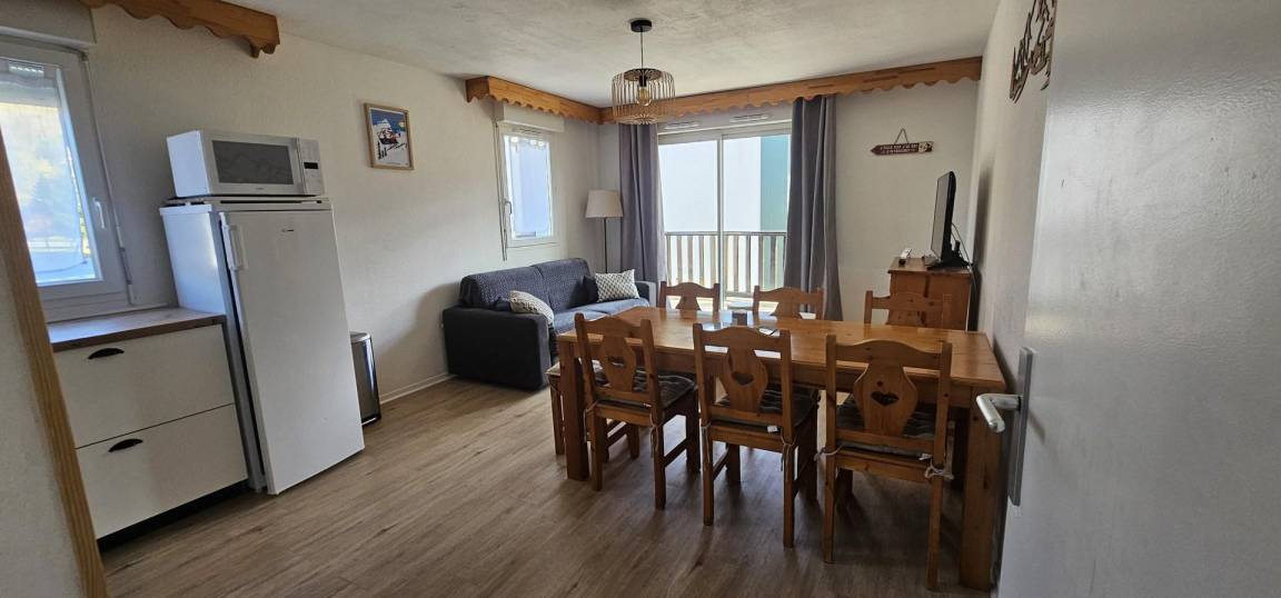 Fläche von ungefähr 50 m². 2te Etage. Wohnzimmer mit Klappschlafcouch. 2 Schlafzimmer mit Doppelbett (140). offener Schlafbereich mit 2 Stockbetten. Kochnische mit 2 Kaffeemaschinen (Tassimo et à filtre), kleiner Backofen mit Mikrowellenfunktion, Geschirrspülmaschine, 2 Induktionsherdplatten, Kühlschrank. Waschräume mit Dusche, WC. Badezimmer mit Badewanne. separates WC. Balkon. Waschmaschine. Die oberen Betten sind nicht für Kinder unter 6 Jahren geeignet.