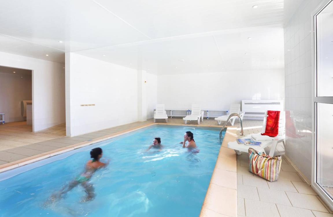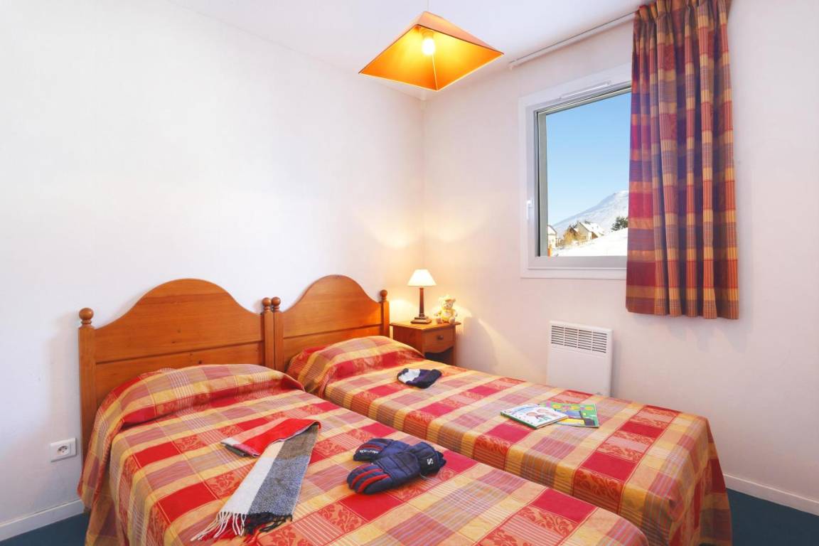 Fläche von ungefähr 58 m². Diele mit 2 Stockbetten. Wohnzimmer mit Ausziehschlafcouch für 2 Personen. Schlafzimmer mit Doppelbett. Schlafzimmer mit 2 Einzelbetten. Kochnische mit Kaffeemaschine, Toaster, Geschirrspülmaschine, Mikrowellenherd, Glaskeramikkochfelder, Kühlschrank. Badezimmer mit Badewanne, Dusche. separates WC. Balkon. Die oberen Betten sind nicht für Kinder unter 6 Jahren geeignet.