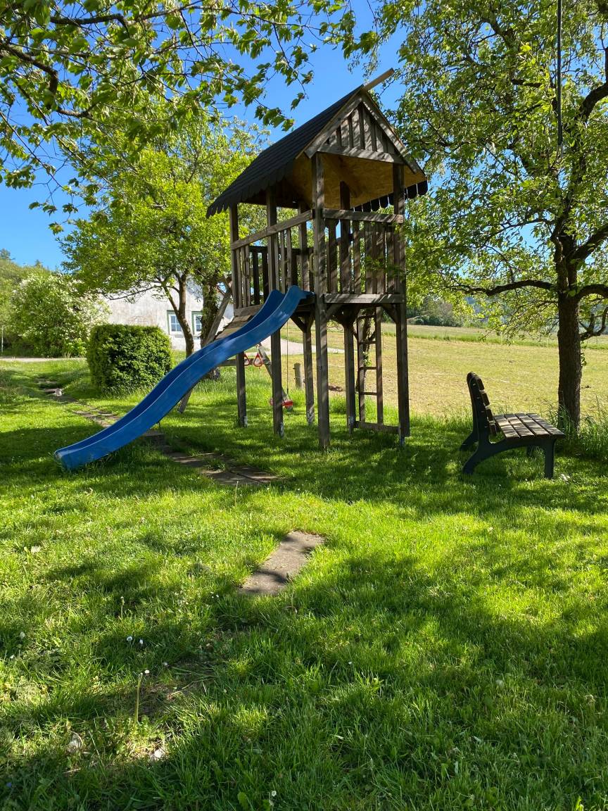 Dafür steht Ihnen im Garten eine Sitzgelegenheit zur Verfügung.
